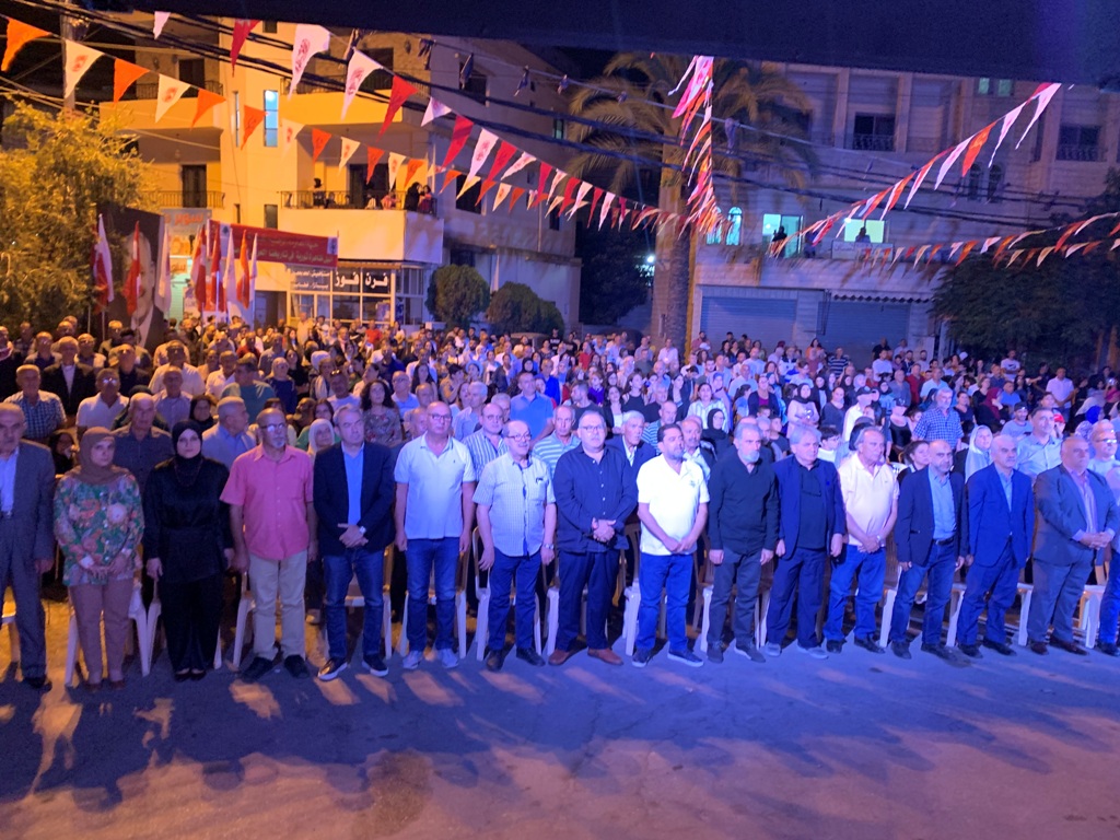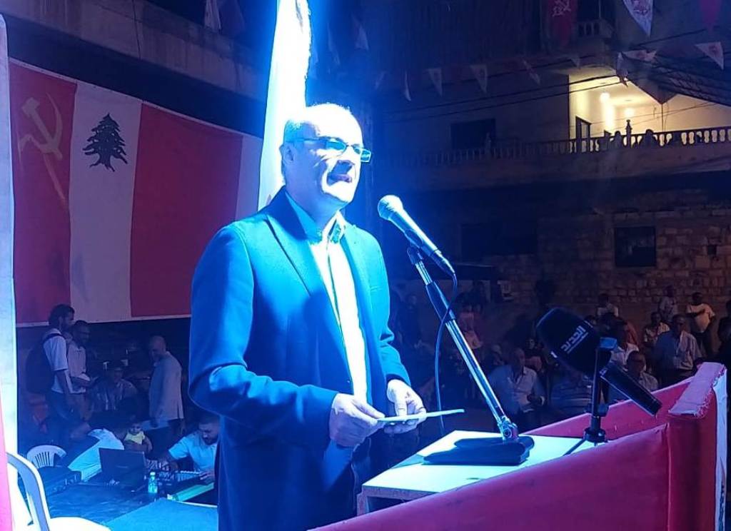 وختم : نحن على مشارف مئة عام على تأسيس الحزب، كبر بالعمر وما شاخ. قاتل وناضل وقدم الشهداء والجرحى والأسرى... وما ساوم. تعب وكَثُر الضجيج من حوله، طاله التآمر والتنكيل والقتل، ما هادن أو انكفأ. تقدم الصفوف في كل المواجهات، فالشيوعيون دوماً إلى الأمام، فازدادت التضحيات ورحل الكثير من الأحبة والرفاق. أما ظلم ذوي القربى فكان أكثر إيلاماً ومع ذلك ما هان وما تراجع؛ لقد وضعتم أيها الشيوعيون أعينكم صوب الشمس فكانت طريقكم واضحة، ما التبست عليكم القضايا، كنتم وما زلتم وستبقون: حزب القضايا الكبرى، حزب الاشتراكية والعدالة الاجتماعية، حزب فلسطين والتحرير، حزب التحرر الوطني وفك التبعية وكسر الهيمنة، هي طريقكم الواضحة، عليها سرتم وقدمت كل ما ملكت أيمانكم وقلوبكم وعقولكم، هي درب فرج الله الحلو وجورج حاوي واحمد المير الأيوبي وقوافل من الشهداء على امتداد خريطة الوطن وقضاياه، فكر حسين مروة ومهدي عامل ونور طوقان وغيرهم الكثير من المبدعين والمفكرين والفنانين، صلابة حكمت الأمين وأبو جمال بدران وجهاد الحجيري... ورفاقهم المقاومين، مئات النجوم الحمراء التي رحلت وزينت سماء كل لبنان، والموجودون بيننا اليوم، وعلى امتداد مساحة الوطن وساحاته، الممسكين بجمر المواجهة من أجل الوطن الحر والشعب السعيد. هذا الحزب لن يتعب وسيصمد بإرادتكم، سنحميه بقلوبنا وبسواعدنا، وأيدينا ممدودة لكل من يؤمن بتلك القضايا ويعمل على تحقيقها بعيداً عن الكيدية والنكد والتعطيل؛ فلنناضل لتحقيق حلم شعبنا ببناء دولته الوطنية الديمقراطية العلمانية، واستعادة كرامته المهدورة. انتم خميرة هذه الأرض وملحها، أنتم ضمير هذا الوطن.
