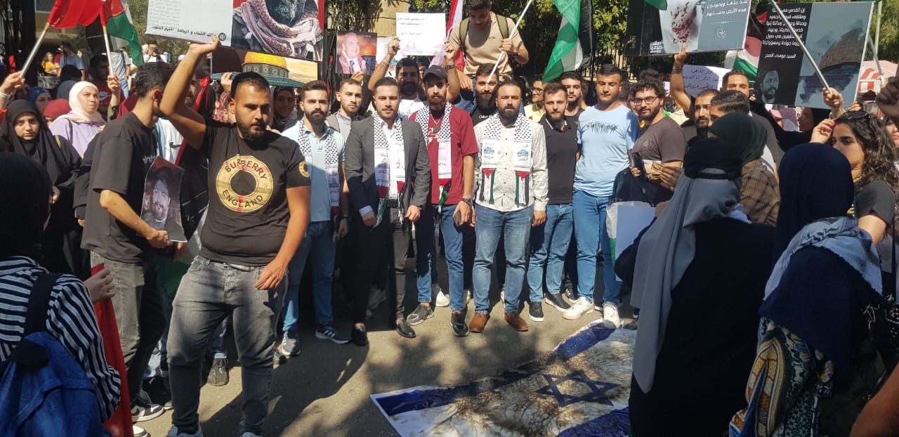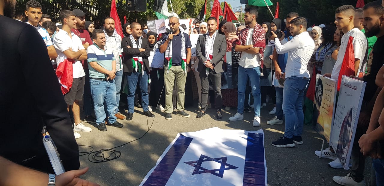 اختتمت الوقفة التضامنية باحراق العلم الاسرائيلي .