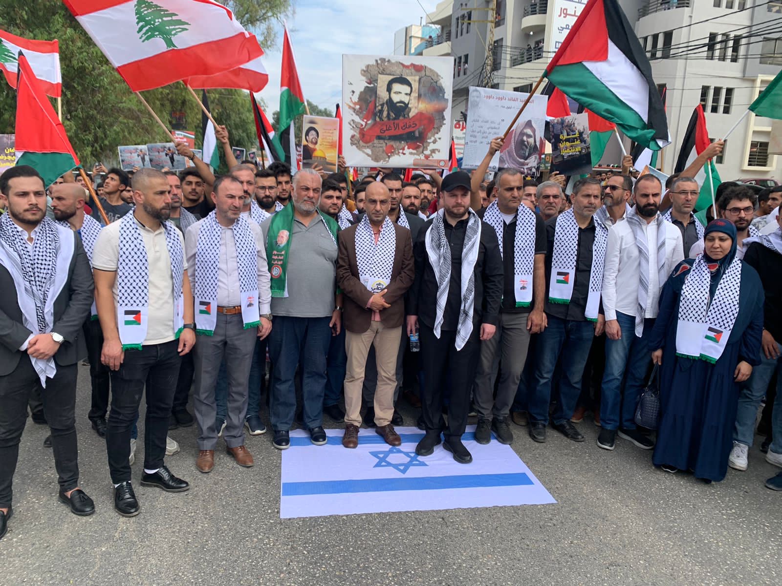 وعند وصول المسيرة الى مدخل ثانوية الصباح الرسمية داس المتظاهرون على العلمين الاميريكيوالإسرائيلي ، وهتفوا " لبيك يا غزة ، لبيك يا اقصى ثم أقيم حفل خطابي تخلله كلمة تعريف للزميل علي عطوي ثم القى الطالب محسن إسماعيل كلمة باسم الطلاب اعتبر فيها ان ما ينتهجه الاحتلال الإسرائيلي بحق اهل غزة من إرهاب وابادة وقصف وانتقام خال من أي صور الإنسانية والعقلانية وما هو الا مظهر اليأس والافلاس والصدمة