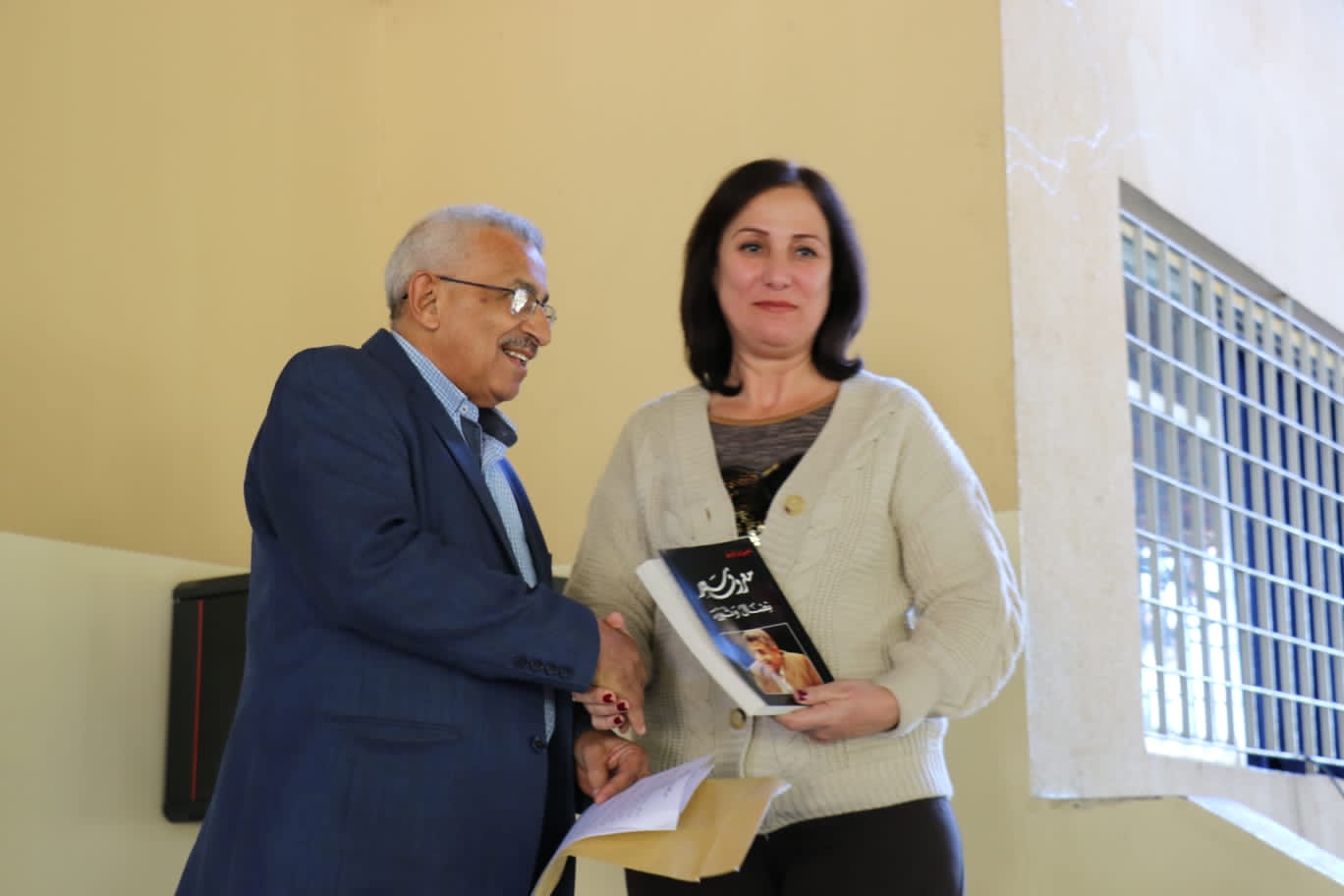كما قدم سعد إلى رئيسة المدرسة كتاب "معروف سعد نضال و ثورة".