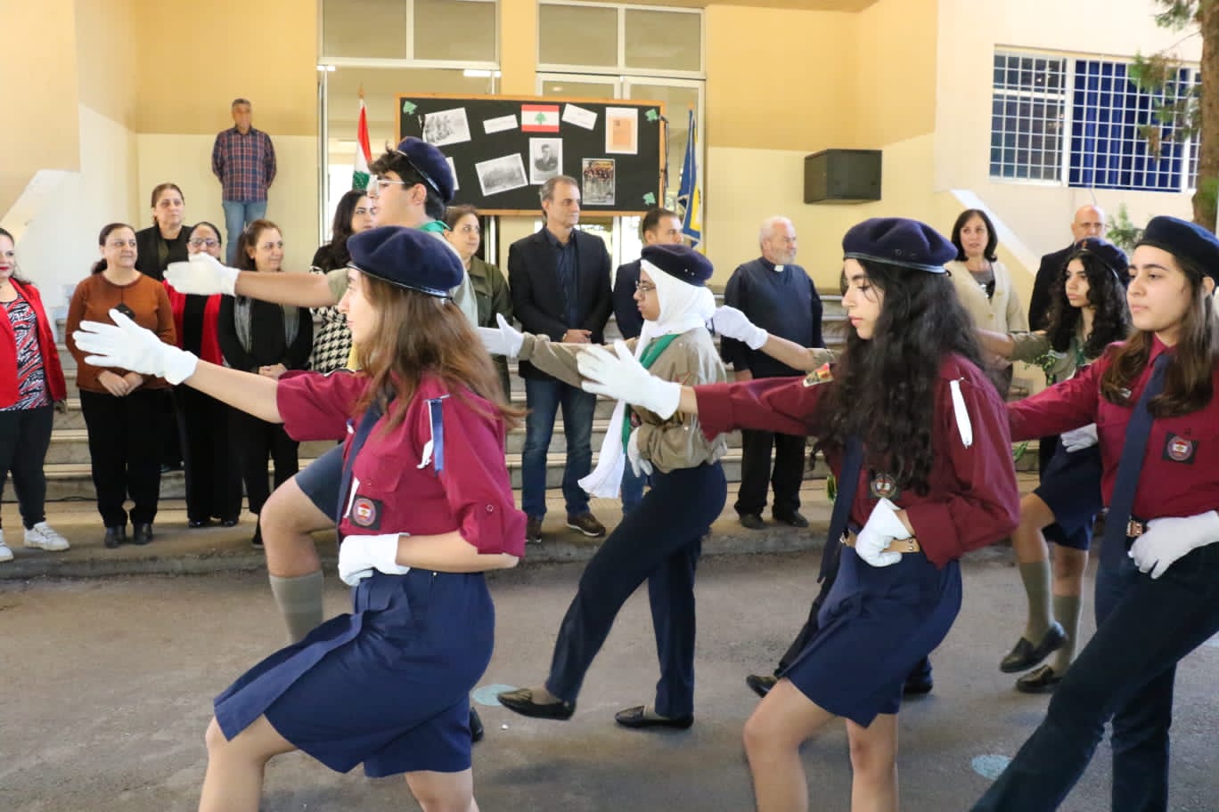 استهل الاحتفال بالنشيد الوطني اللبناني، وبرفع العلم في باحة المدرسة، وبأغان وطنية وكلمة عن المناسبة، وبرقصة وطنية، قدمها طلاب القسم الثانوي في المدرسة.