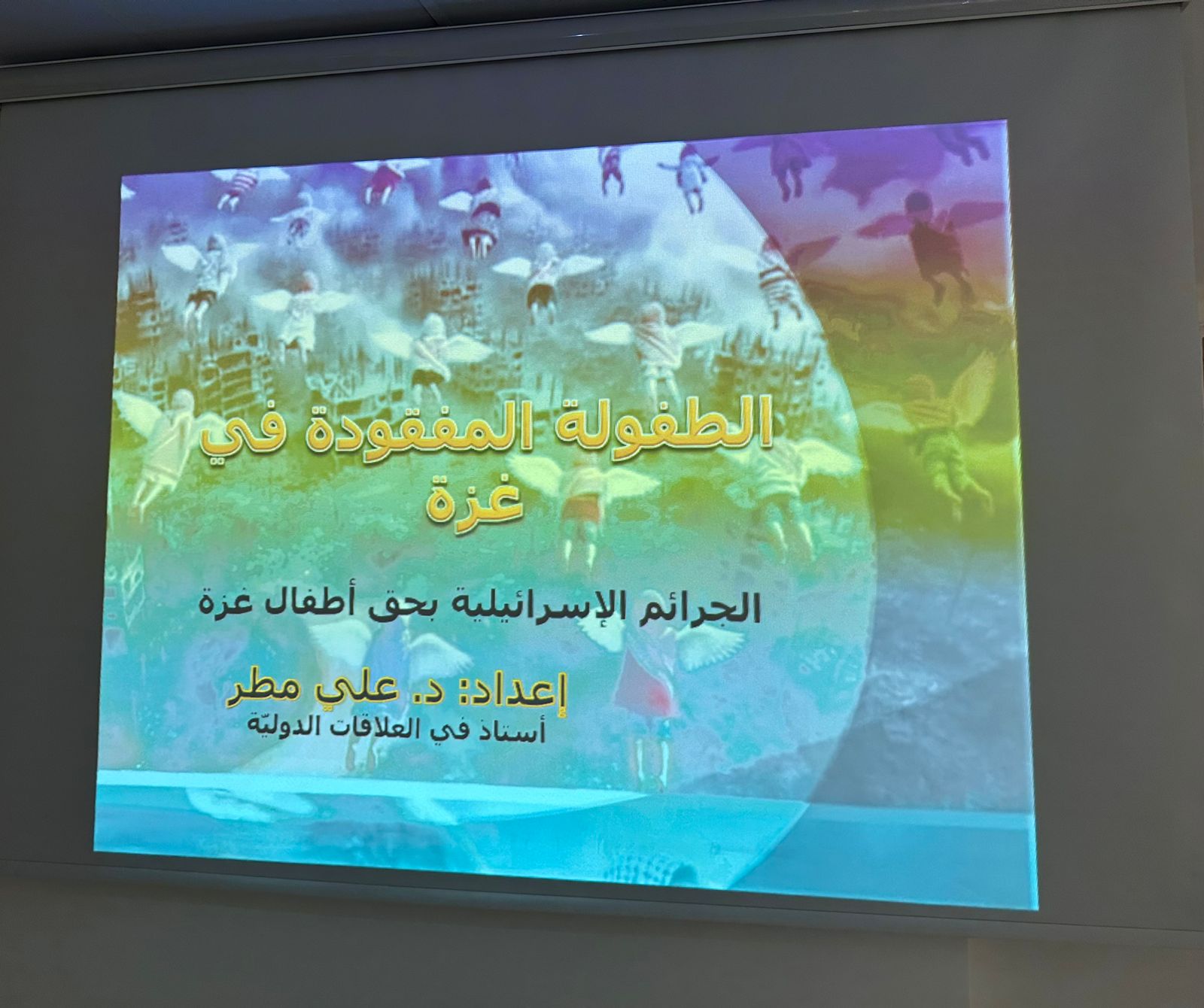 أدَارَ المُحاضرة، المُحاضِر الجامعي الدُّكتور علي مطر، الخَبير في القانون الدّولي والشؤون الدوليَّة، وَقَدَّمَ رؤى وَوجهات نَظَر حول التحدّيات والحُلول المُتَعَلِّقة بِحقوق الأطفال في مناطِق الحرب.