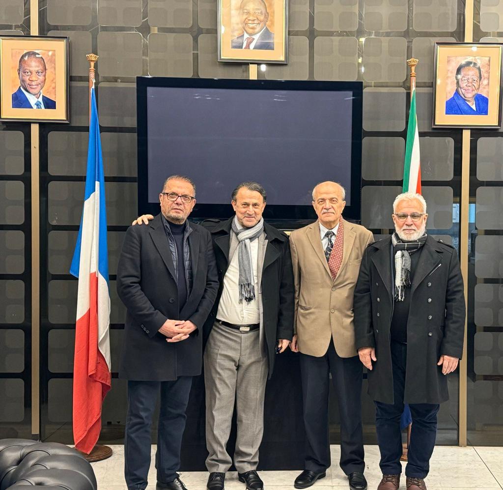 زار وفد مشترك من المؤتمر الشعبي في باريس وائتلاف الجمعيات اللبنانية - الفرنسية سفير دولة جنوب افريقيا في العاصمة الفرنسية باريس ايمانويل ناتي متِلتْوا للاشادة بالشكوى التي قدمتها بلاده امام محكمة العدل الدولية ضد الجرائم والمجازر التي يرتكبها العدو الاسرائيلي في غزة . يزور سفير جنوب أفريقيا مشيدا بشكوى بلاده ضد العدو الصهيوني امام محكمة العدل الدولية