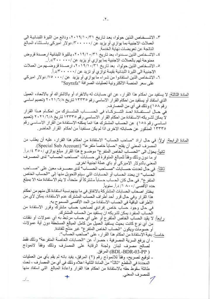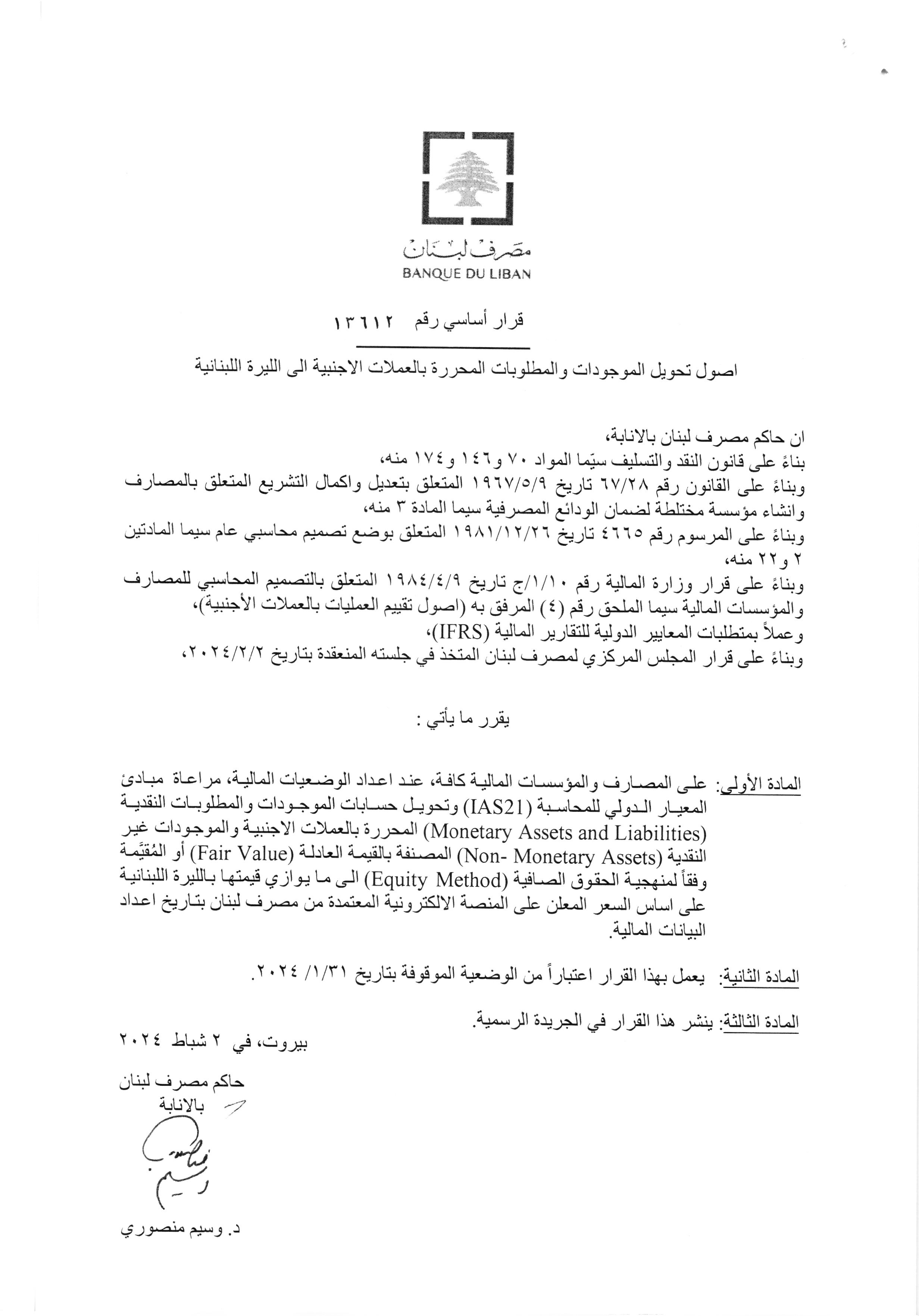 وتعميم آخر (التعميم 167) يتعلق بأصول تحويل الموجودات والمطلوبات المحررة بالعملات الأجنبية الى الليرة اللبنانية.