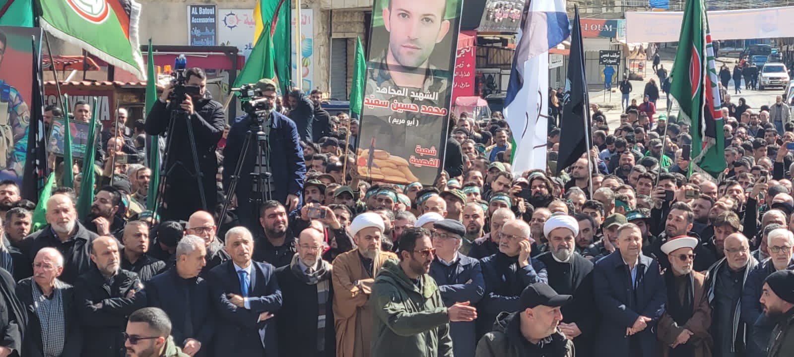 مراسم تشييع حاشدة لشهداء حر كة أمل في مدينة النبطية . قبيسي : لا نريد لبنان الا الخير تعالوا نجتمع على قضية واحدة وننبذ الطائفية ونلتقي على كلمة سواء .