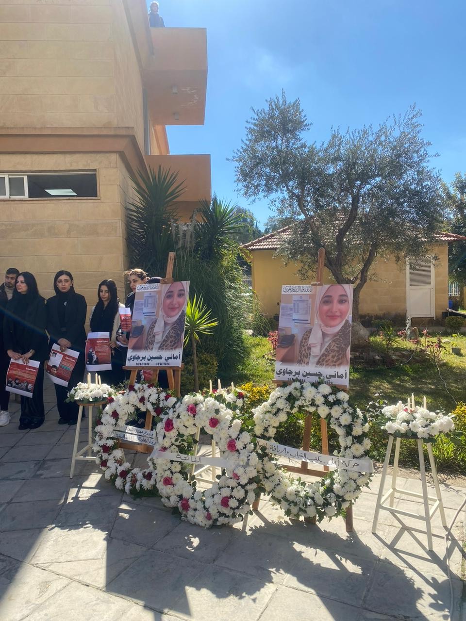 شارك في الوقفة ذوو الشهيدة، المدير الأكاديمي للجامعة الپروفسور حسّان خشفه، المدير الإداري الأستاذ وائل رباح، الدكتور محمد قانصو ، العمداء التنفيذيون وأساتذة الأقسام، زملاء الشهيدة من الكادر الإداري،