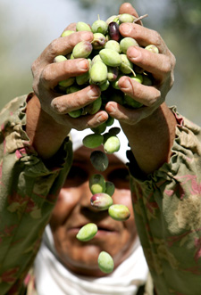 تفرش الجدة الحرامات واحداً بجانب الآخر حتى تغطي محيط الشجرة فلا تقع حبة زيتون الى الارض وتضيع هباء. على الحرامات يرمي الشبان الحبوب التي يفرطونها من الاعلى ويرمي الاطفال والفتيات حبات جمعوها من أغصان شجرة الزيتون الكثيرة والمتشابكة. الجدة ونسوة العائلة يجلسن تحت الشجرة ينظفن الحبات من الاوراق والاغصان العالقة فيها ومن التراب الذي قد يخالطها ويرحن يعبئنها في أكياس الخيش البيضاء فتمتلئ كيسا بعد كيس، وترصف الى جانب بعضها البعض، حتى اذا ما قطفت الشجرة عن بكرة أبيها، تنقل الاكياس الى شاحنة "البيك آب" المنتظرة، لتنقل الى البيت. وتنقل الحرامات الى أسفل الشجرة التالية لتنظف من زيتونها الذي سيتحول زيتا او حبوبا خضراء مكبوسة في ما بعد.