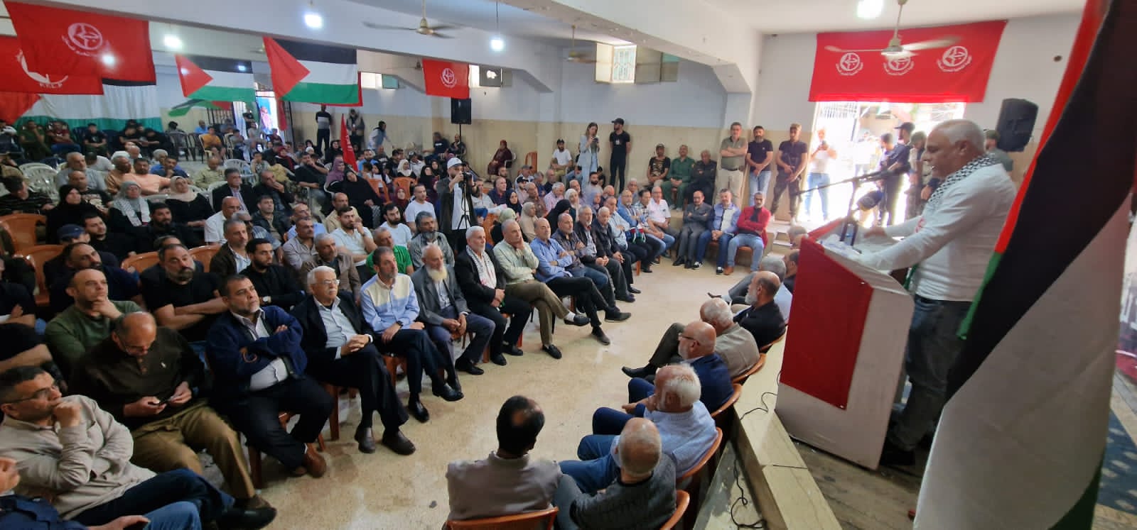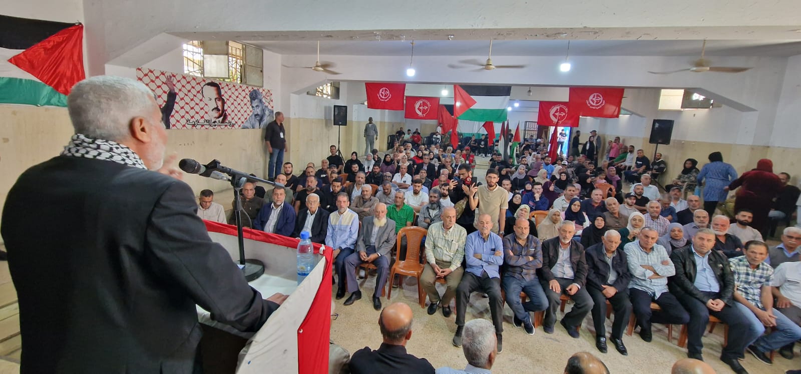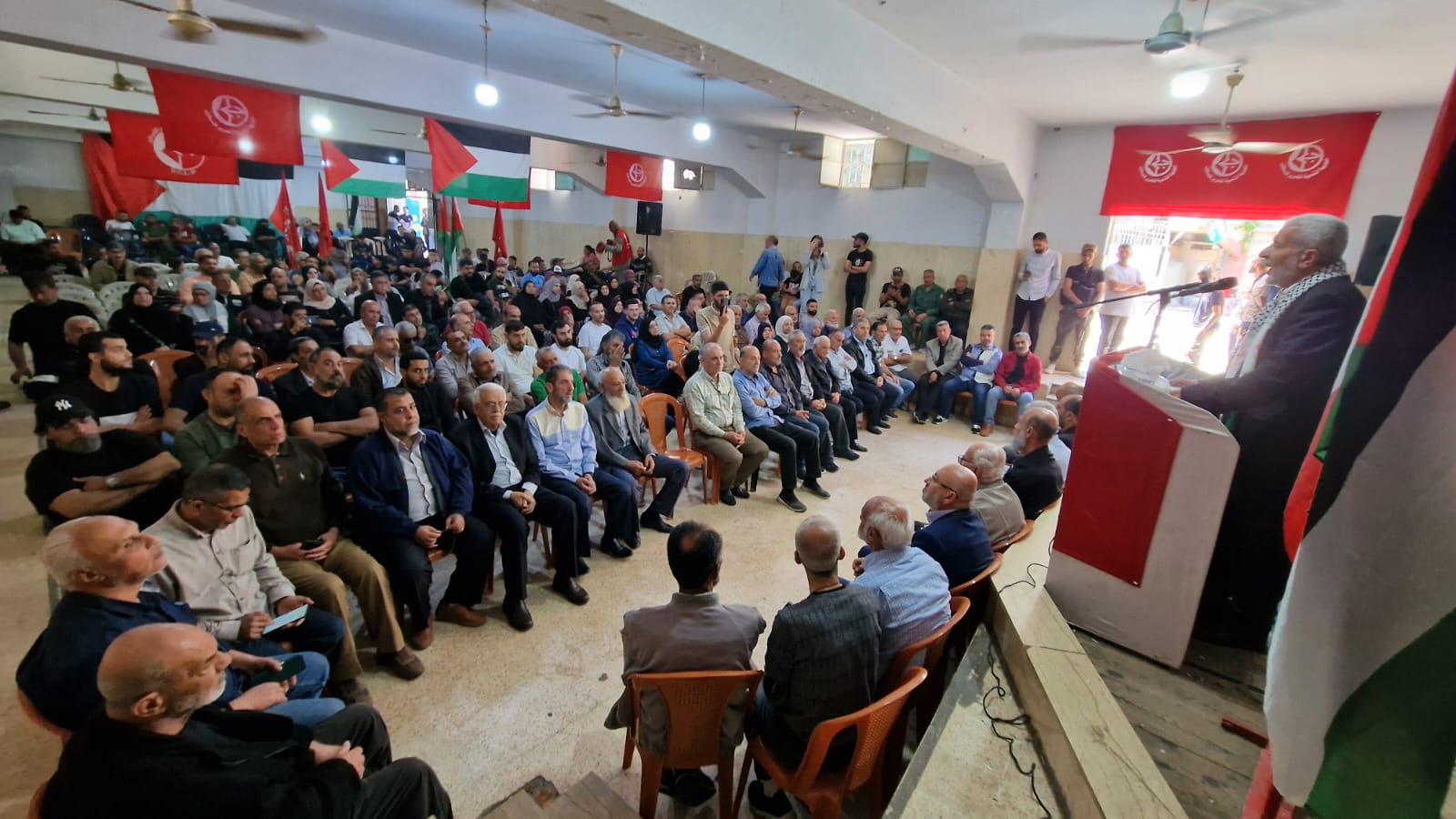 وتابع، من هنا، من عين الحلوة نبعثُ بتحيةِ شموخٍ وكبرياءَ إلى روحِ المناضلِ الوطنيِ الجبهاويِ الكبيرِ والأديبِ والمفكرِ أبو ميلاد، رفيقُ دربِ القادةِ الأبطالِ/ الأمينِ العامِ الرفيقِ أحمد سعدات، ومروان البرغوثي وحسن سلامة، ووجدي جودة، وبسام السعدي، وباسم خندقجي، وعاهد أبو غلمي، وكميل أبو حنيش وكلِ أسرَانا الأبطالِ الصامدين .