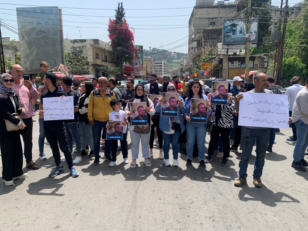 ورفع الاهالي الذين تجمعوا وسط الطريق رافعين صور لابنائهم الموقوفين ولافتات كتب على بعضها " البورصة مش بس بالنبطية ، فتحوا باب الرخص ومنرخص" ، و " الجنوب يقصف ويحارب حتى بالمصالح ، تركتوا الحرامية والبنوك اللي سرقت اموالنا"، واطلقوا هتافات تطالب باطلاق ابنائهم ، داعيين لتطبيق القانون في كل لبنان وليس في النبطية فقط، وفتح باب الترخيص لتكون " مكاتبنا قانونية" ، داعيين القضاء لبسط سلطته واحكامه على البنوك " التي حجزت اموال المغتربين والمزارعين والمتقاعدين والعمال".