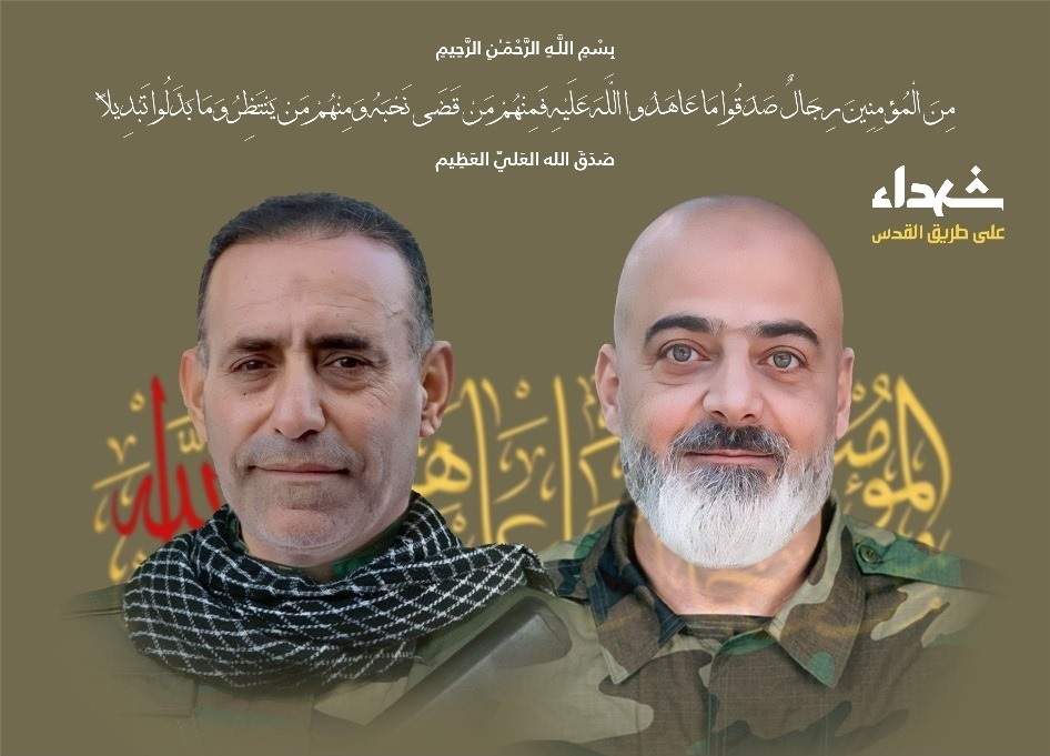 لمناسبة مرور أسبوع على ارتقاء رافع فايز حسان وفرج الله علي حمود شهيدين، يقيم حـزب الله وأل الشهيدين مجلس فاتحة عن روحيهما الطاهرتين وتُستقبل فيه التبريكات والتعازي