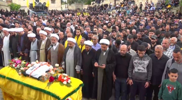 وبعد أن أمّ المسؤول الثقافي لحزب الله في منطقة جبل عامل الثانية الشيخ محمد جمعة الصّلاة على الجثمان الطاهر جاب النعش شوارع البلدة على وقع الهتافات الحسينية والمؤيدة للمقاومة بمشاركة شخصيات وفعاليات ، علماء دين ، عوائل الشهداء والأهالي ..