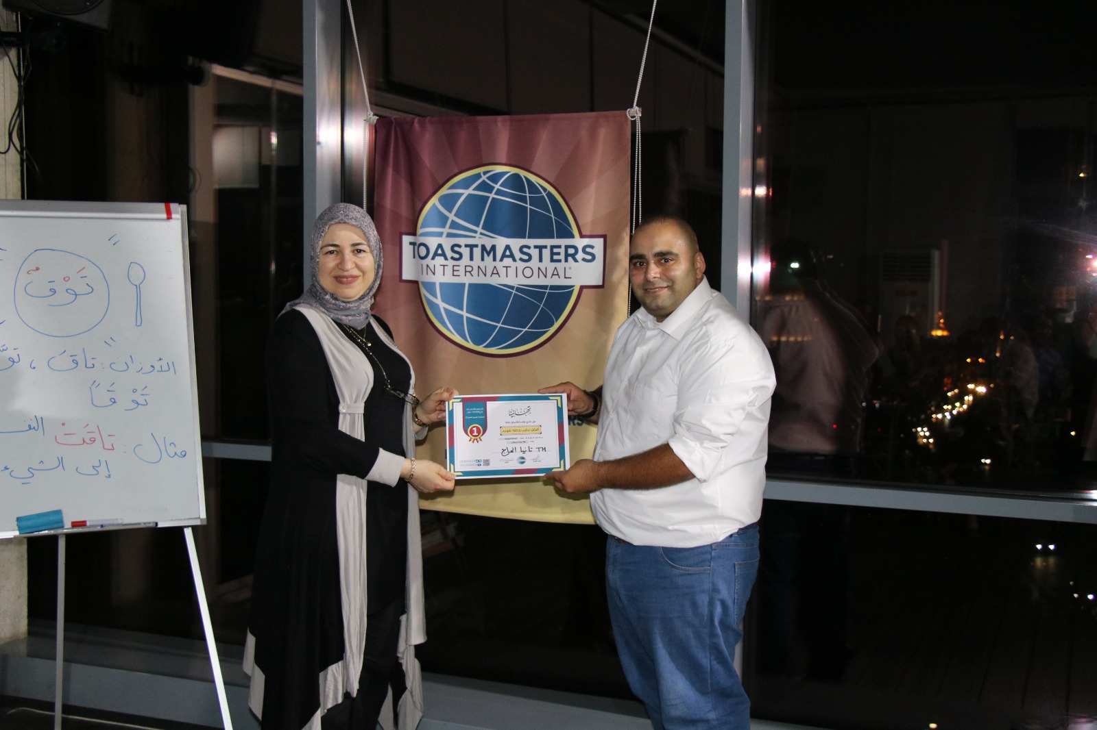 أما الفقرة الأخيرة، فكانت بقيادة المقوّم العام التوستماستر زهراء شعيتو وفريقها الذين شاركوا توصيات عديدة لمساعدة الخطباء على تحسين وتعزيز الأداء من جهة والحديث بلغة عربية سليمة خالية من التلكؤات من جهة ثانية.
