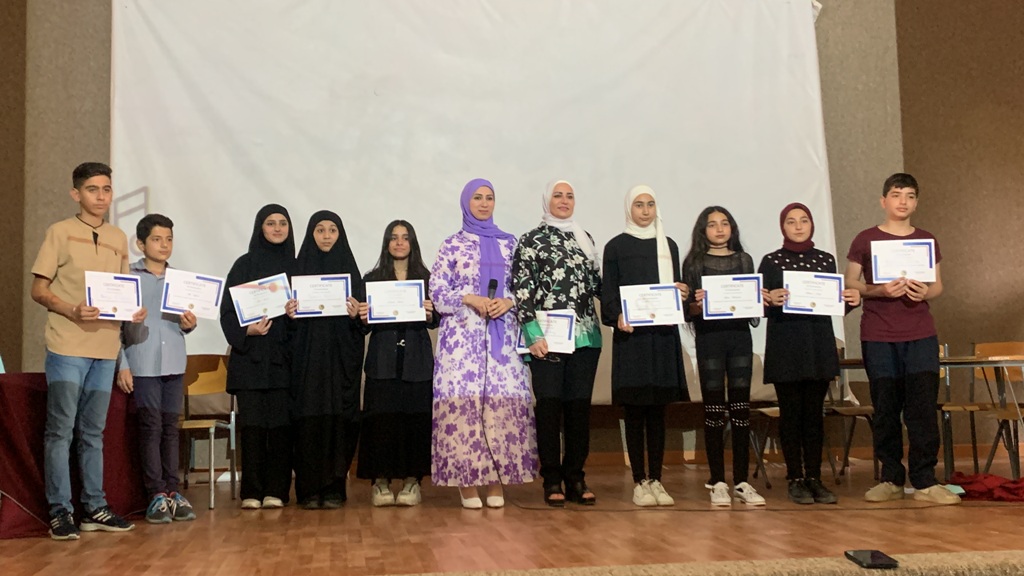 بعدها قدم طلاب اناشيد باللغة الانكليزية ، وجرت مباراة بينهم حول لفظ الكلمات باللغة الانكليزية.