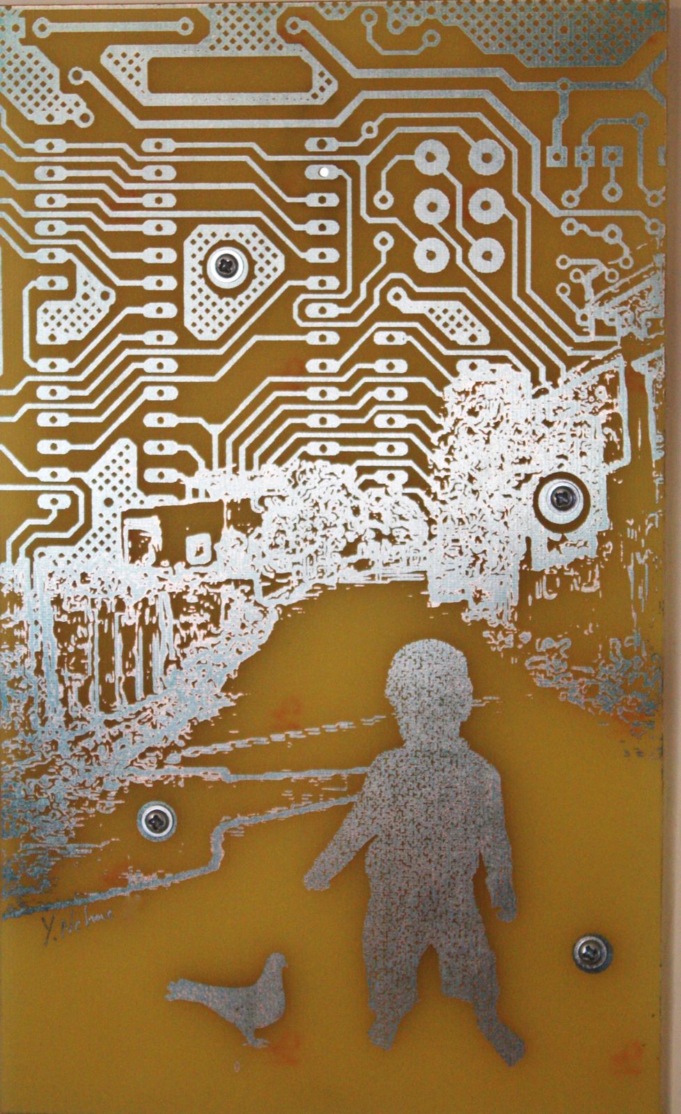 يوسف نعمة، ابن الجنوب أيضاً، وكما عوّدنا، تكمن لعبته في فنّ الديجيتال (Digital Art)، إذ يظهر قلب الجهاز الإلكتروني بدهاليزه ولونه الواحد المونوكرومي، ليقول لنا بأنّ عصرنا هو عصر الآلة التي اختفى معها الإنسان، وغابت ملامحه... هو عصر التكنولوجيا والآلة وموت الإنسان واللّون والمشاعر والأحاسيس والدفء...
