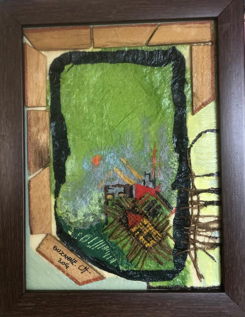 يغلب على أعمال سوزان شكرون الطابع الطفولي، عبر أشخاصها وتفاصيل الأوجه المجسدة ببراءة وعفويّة وبالألوان الثريّة. تتحوّل اللّوحة إلى سمفونيّة تحاكي الروح والعين والقلب، فتدغدغ مشاعرنا وأحاسيسنا، ونستسلم لمرسلتها الجماليّة المطعّمة بدلالاتها المرافقة لها. استعملت الفنانة تقنيّة الأكريليك مطعّمة ببعض الكولّاج، فجاءت مريحة للعين عبر تناغمها التعبيريّ والغنائيّ. هكذا تجتمع لوحات الفنّانين الصغيرة الحجم، في غاليري «نور بلّوق»، لتزرع الأمل في مدينة النبطيّة التي لا تكفّ عن سماع أصوات الحرب والقتل.