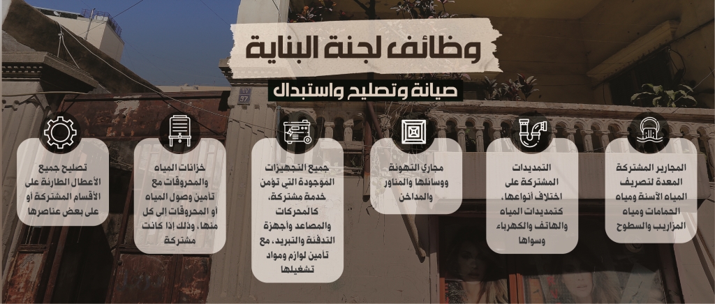 الهدف الأساسي من إنشاء لجان البنايات تأمين مصلحة الجميع وتنظيمها، وحل النزاعات قدر الإمكان. لكن تلك اللجان تتحول إلى جزء من المشكلة بسبب عدم توصل سكان البناية إلى حلول تتطلب تسويات وربما تنازلات في ظل الوضع المعيشي الصعب والإفقار المزمن.