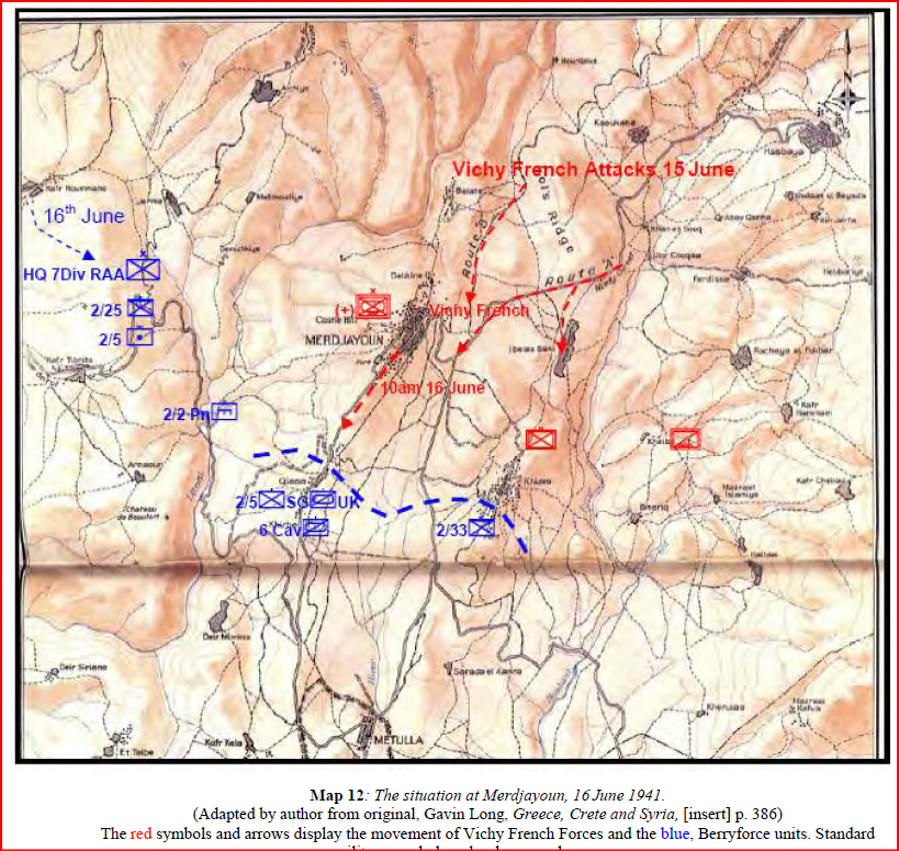 كان التوجه نحو القنيطرة جزءاً من خطوة استراتيجية أكبر، ففي الرابع عشر من حزيران، تم دمج معظم القوات العاملة في منطقة مرجعيون تحت قيادة المقدم موناغان، وهذه القوات عبارة عن الكتيبة (2/33)، وسلاح الخيالة الأسترالي السادس، وفوج المدفعية الميدانية العاشر، ومفارز المدفعية المضادة للدبابات، وفوج الهندسة التي كانت جميعها حتى ذلك الحين تحت أمرته الفعلية، وأضيف إليها وحدتي قتال كانتا متواجدتان في المنطقة تحت قيادة الجنرال لافاراك، وهما قوات الاسكتلنديين التي كانت منتشرة حول مرجعيون وكان على رأسها العقيد تود، والأخرى الرواد 2/2 (بايونيرز) التي كانت متموضعة بالقرب من جسر الليطاني مع بعض القوات الأخرى العاملة في نفس المكان.
