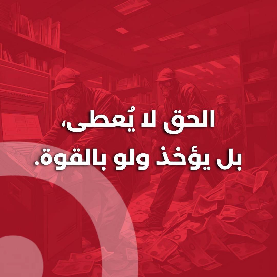 الحق لا يعطى بل يُنتزع، وما أُخِذ بقوة الشر لا يُسترد إلّا بقوة الحق. هم صوّنوا وصفّحوا مصارفهم وقصورهم ووظّفوا مجموعات من "البلطجية والزعران والمرتزقة" لحمايتها بعد سلب حقوق المودعين، وهو بحد ذاته تصرّف المذنب في السرقة.