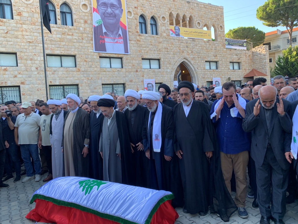 وحمل نعش الفقيد من منزله الى باحة مفرق الدوير -الشرقية حيث اقيمت مراسم تكريمية خاصة ، وحملت ثلة من الجيش اللبناني النعش وقد لف بالعلم اللبناني ، الى منصة اعدت للمناسبة ، وعزفت الفرقة الموسيقية التابعة للجيش اللبناني لحن الموت ، ثم أدث عناصر عسكرية التحية العسكرية للفقيد ، بعدها سار المشيعون في موكب باتجاه مجمع بر الوالدين في ساحة الدوير ، حيث استقبلت الجثمان عناصر من الجيش اللبناني ، وعلى وقع لحن الموتى الذي عزفت الفرقة الموسيقية في الجيش ، جرى تقديم التحية العسكرية بحضور النائب هاني قبيسي، الوزير والنائب السابق محمد فنيش، النائب السابق ناصر قنديل، رئيس المكتب السياسي في حركة امل جميل حايك وعضو هيئة الرئاسة خليل حمدان، العميد عبدالله حرب ممثلا قائد الجيش العماد جوزاف عون ، العميد احمد علي احمد ممثلا المدير العام لقوى الامن الداخلي اللواء عماد عثمان ، المقدم علي حلاوي ممثل المدير العام للامن العام اللواء الياس البيسري، المقدم حسين طباجة ممثلا المدير العام لامن الدولة اللواء طوني صليبا، رئيس مكتب مخابرات الجيش في النبطية العميد علي اسماعيل، مسؤول منطقة جبل عامل الثانية في حزب الله علي ضعون، مسؤول وحدة العلاقات الاعلامية المركزية في حزب الله محمد عفيف ، امين فرع حزب البعث العربي الاشتراكي في الجنوب احمد عاصي، وحشد من الشخصيات والقيادات العسكرية والامنية والاهلية .