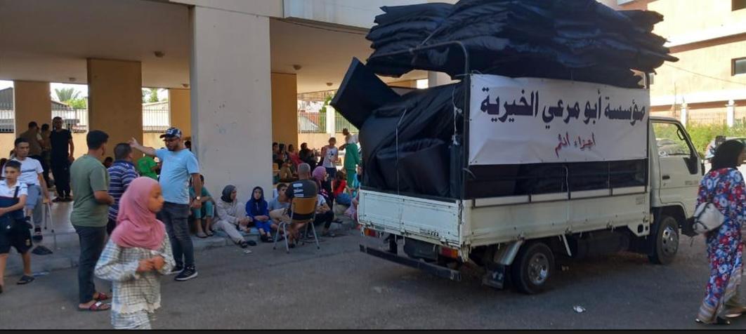 عند البدء بفتح مراكز الإيواء في المدينة، لم يتمّ تأمين أكثر من 15 في المئة من احتياجات الإقامة في اليومين الأوّل والثاني، لكن بعد ذلك جرى تأمين الفرش والمخدّات والبطّانيّات شيئًا فشيئًا، وذلك من خلال مؤسّسات دوليّة ومحلّيّة بالإضافة إلى مبادرات فرديّة ومجموعات ناشطة في المدينة.