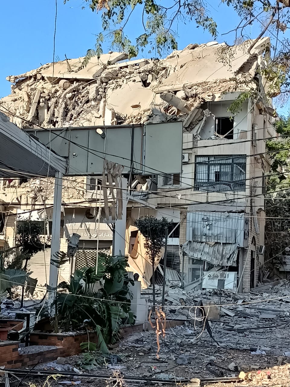 كما دمرت غارة جوية معادية مبنى من 7 طوابق محاذي لمكتب النائب ناصر جابر القريب من حي مصرف لبنان ، وتضررت جراء الغارة ايضا العديد من الشقق السكنية والمحال التجارية