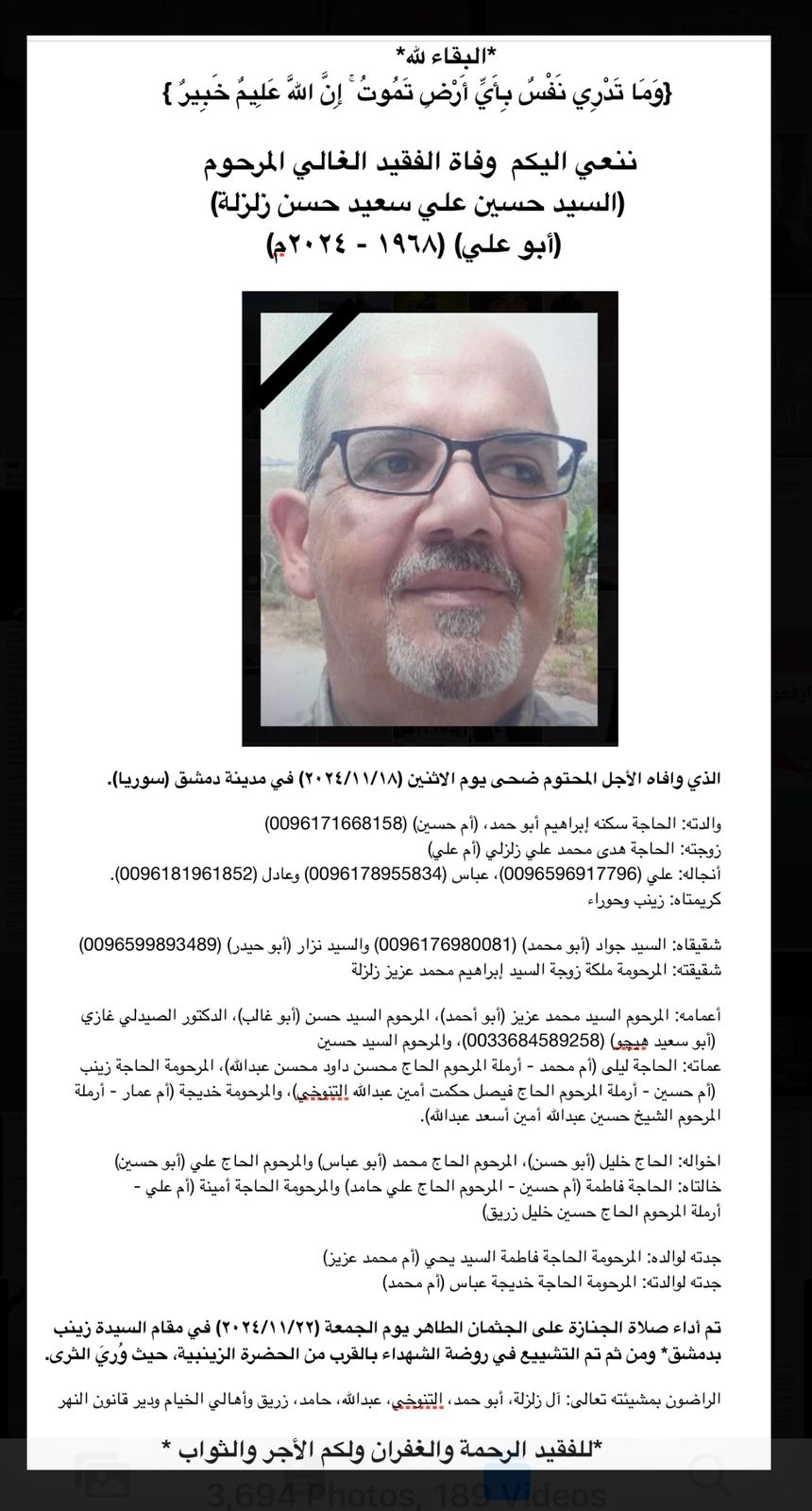 السيد حسين علي سعيد حسن السيد محمد سعيد ابراهيم زلزلة (أبو علي) (١٩٦٨ - ٢٠٢٤م)