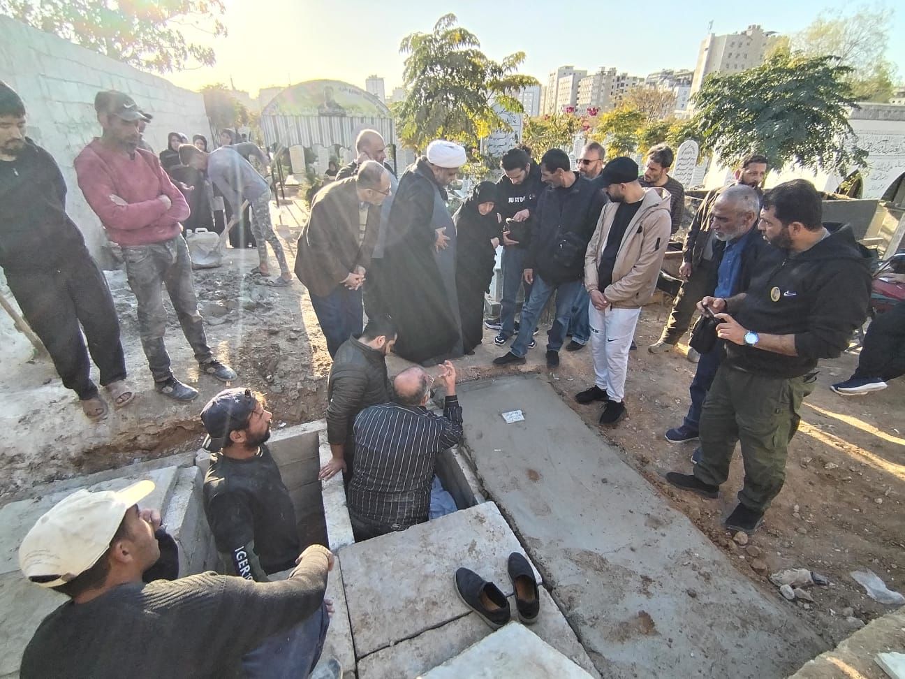 تم أداء صلاة الجنازة على الجثمان الطاهر بعد ظهر يوم الجمعة (٢٠٢٤/١١/٢٢) في مقام السيدة زينب (ع) بدمشق ومن ثم تم التشييع في مدافن روضة الشهداء بالقرب من الحضرة الزينبية، حيث وُريَ جدث الرحمة.