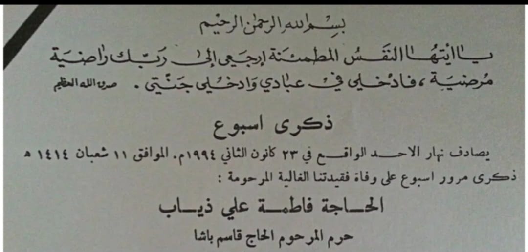هذه القصيدة النثرية كتبت تخليدا لروح جدتي لأمي الحاجة فاطمة علي ذياب التي فارقت الحياة منذ واحد وثلاثون عاما.