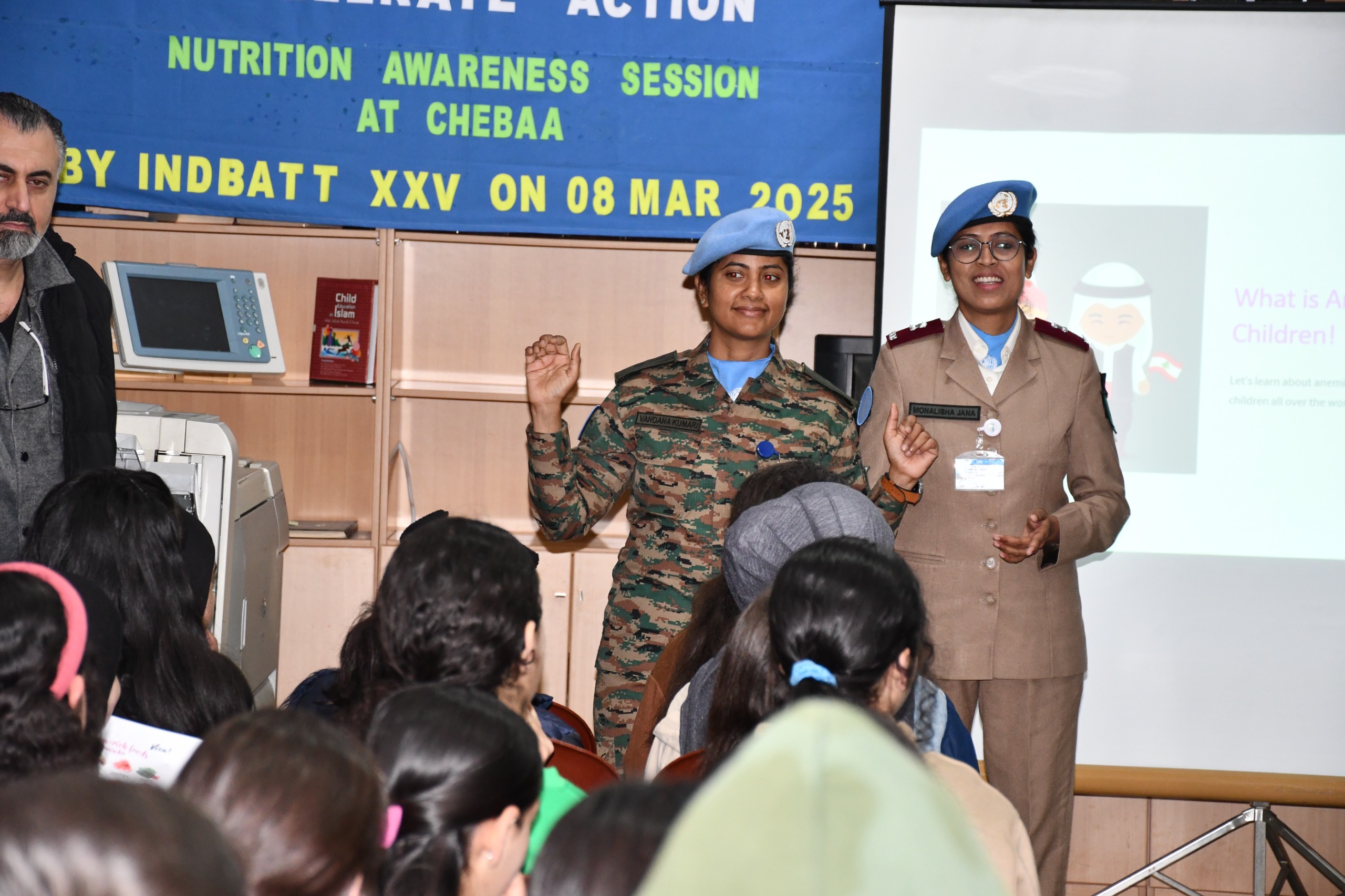 في إطار دعم الصحة الغذائية، نظّمت الكتيبة الهندية دروسًا تثقيفية لطلاب مدرسة شبعا الرسمية، ركّزت على أهمية النظام الغذائي المتوازن وتأثيره على صحة الأطفال ونموهم، خصوصًا في المناطق التي تعاني من أزمات غذائية.
