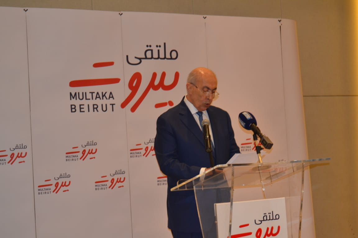 بداية، تحدث عضو الهيئة الإدارية للملتقى إنعام خالد مرحبا، ثمّ تحدث رئيس الملتقى الدكتور فوزي زيدان وقال: «إن هدف ملتقى بيروت هو تشجيع الحوار بين اللبنانيين على اختلاف انتماءاتهم الطائفية والمناطقية، وتنمية روح المواطنة، والمساهمة في خدمة المجتمع البيروتي ومتابعة قضاياه مع المسؤولين، والعمل على استعادة الوجه الحضاري والوطني الجامع والموحّد لأطياف المجتمع البيروتي».
