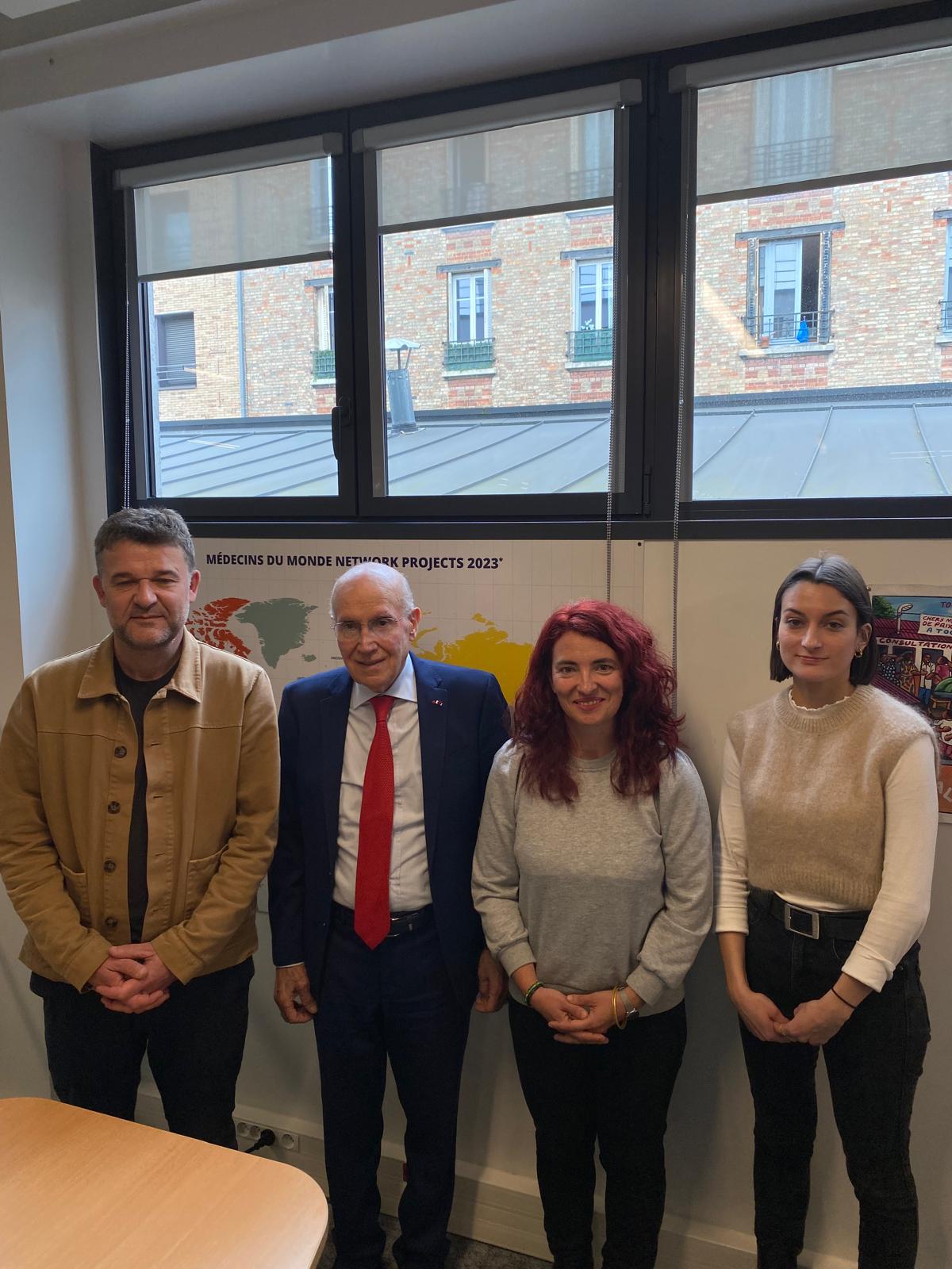 أما في باريس، فقد التقى مهنا برفقة منسقة الصحة في عامل ماريون فابر مع فريق في وزارة الخارجية الفرنسية، بحضور السفير فيليب لاليو، رئيس خلية الأزمات والتضامن، والمدير العام في الخلية بيار سالينيون، والفريق المساعد. ناقشوا خلال اللقاء الشراكة مع خلية الأزمة والتضامن بين المؤسسات الإنسانية، والتي تتمحور حول صون حقوق الناس وبناء مجتمع أكثر عدالة ومساواة للجميع.