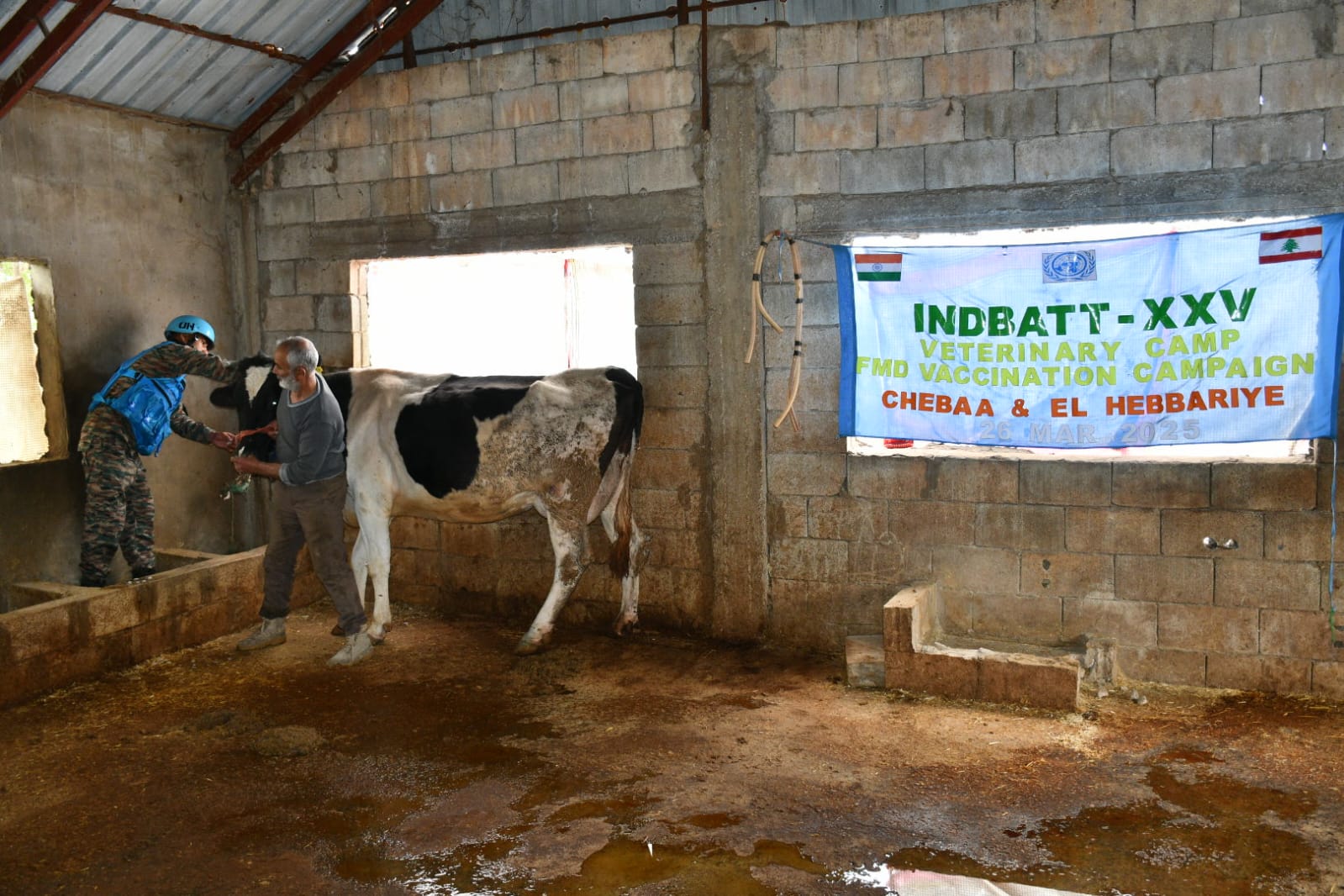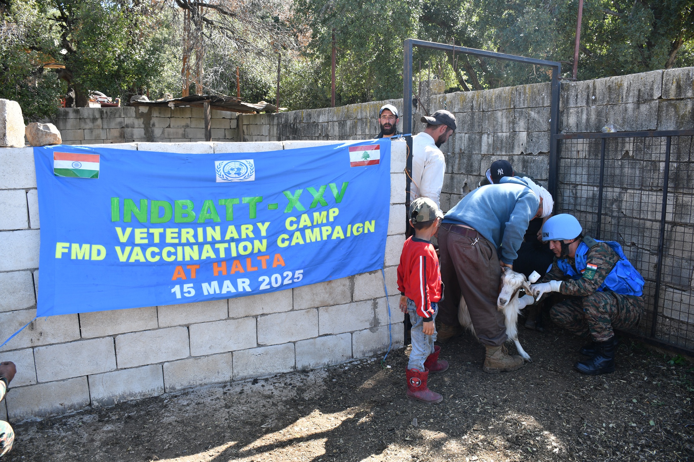 أتمّت الكتيبة الهندية (INDBATT)، العاملة ضمن قوة الأمم المتحدة المؤقتة في لبنان (اليونيفيل)، بنجاح حملة تطعيم ضد الحمى القلاعية، والتي أُطلقت في 6 آذار 2025. وتُعد هذه الحملة محطة مهمة في التزام الكتيبة المستمر بدعم صمود المجتمعات المحلية وتعزيز سبل عيشها ضمن نطاق منطقة مسؤوليتها.