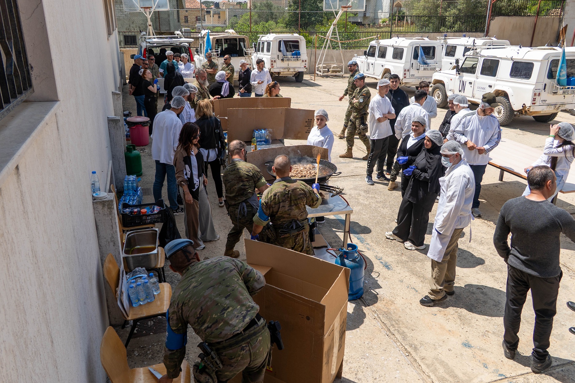 وخلال الجلسة الافتتاحية التي استضافتها المدرسة الفنية في مرجعيون، أُتيحت الفرصة لخمسة وعشرين طالبًا، تتراوح أعمارهم بين 17 و25 عامًا، لتعلّم خطوات إعداد طبق "الباييّا" الإسباني الشهير. وقد ترافقت هذه الفعالية مع تقديم تبرّع بمجموعة من المعدات والمواد المخصصة لفنون الطهي دعمًا للمدرسة والبرنامج على حد سواء. وقد تسلّم الهبة مدير المدرسة، السيّد بسّام لحود، الذي أعرب عن تقديره العميق لعناصر الكتيبة الإسبانية على إعادة تفعيل هذا المشروع الثقافي القيم، وعلى المبادرة الكريمة التي رافقته.
