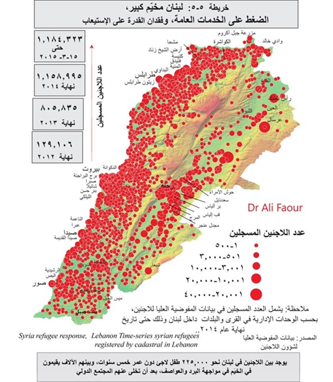 لقد فشلت كل المحاولات السابقة في التعامل مع المفوضية، التي استمرت تضغط على الحكومة اللبنانية لتسجيل النازحين مقابل اعطاء "الداتا" الكاملة لأعدادهم، كما اتبعت المفوضية سياسة دمج اللاجئين في المجتمعات المحلية، واستفادت في هذا المسعى من موقف الحكومة اللبنانية، الرافض لإقامة مخيّمات.. حيث باتت حالة لبنان قريبة من الانفجار السكاني، بحسب تقرير المفوضية في تموز/يوليو عام 2013، "فلم يصل عدد اللاجئين في أي بلد إلى ثلث السكان كما هو الحال في لبنان، وذلك منذ أحداث رواندا عام 1994"..