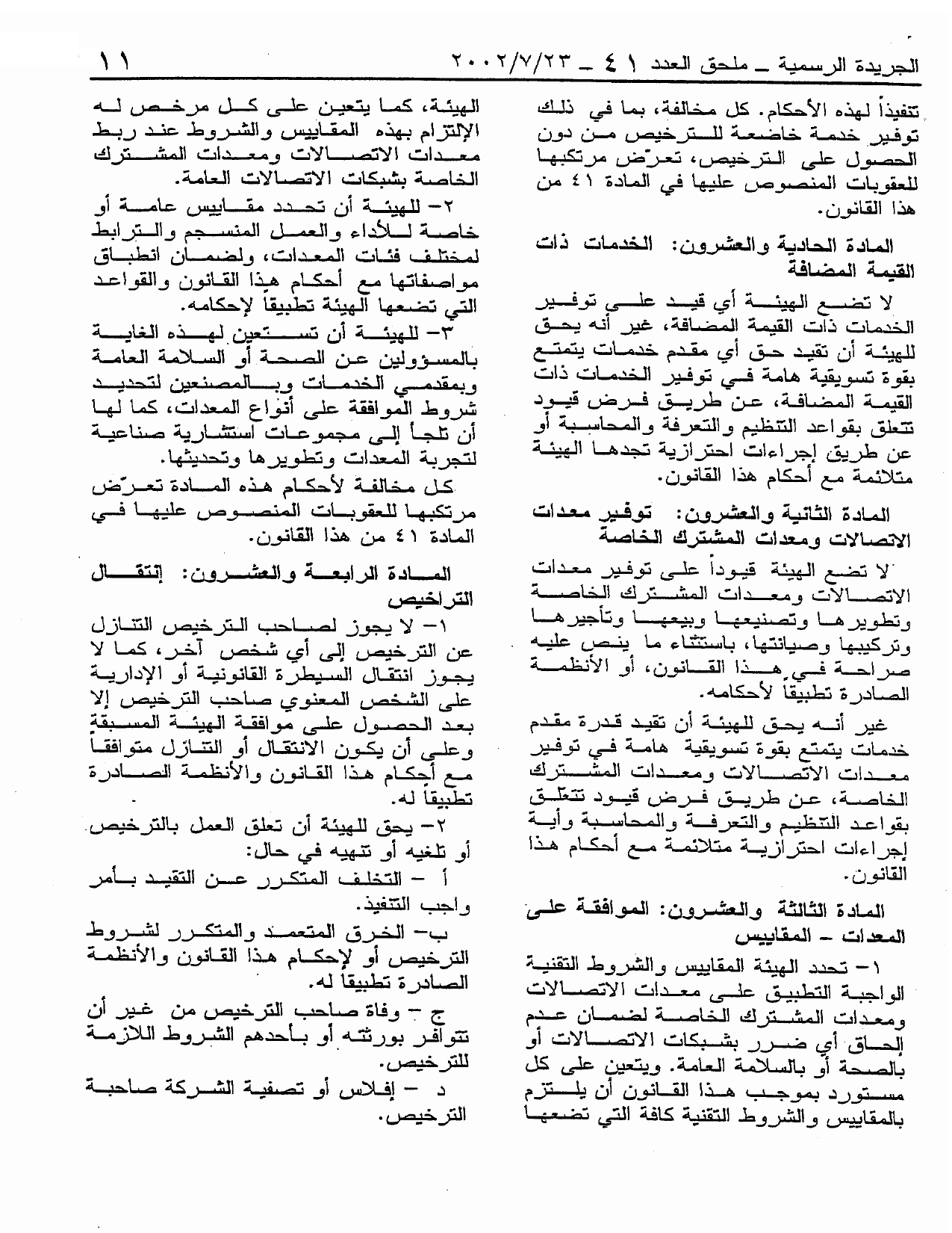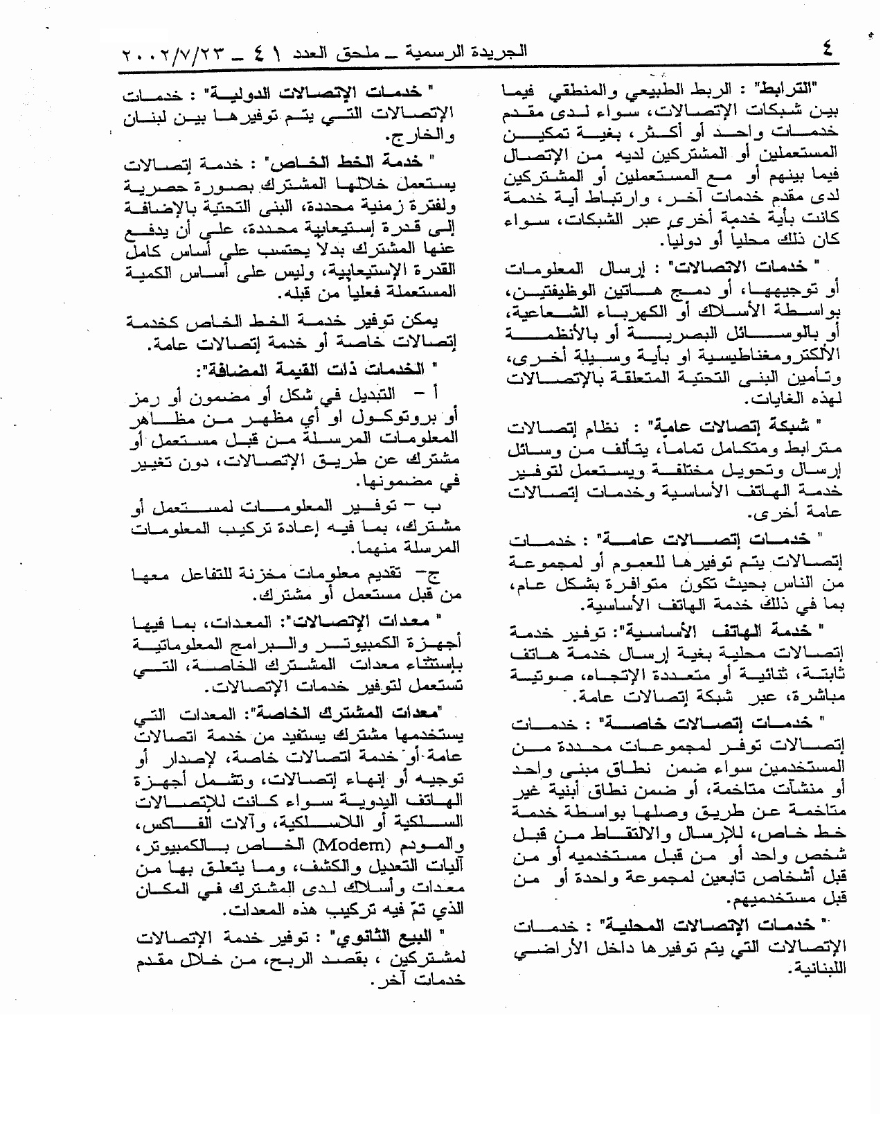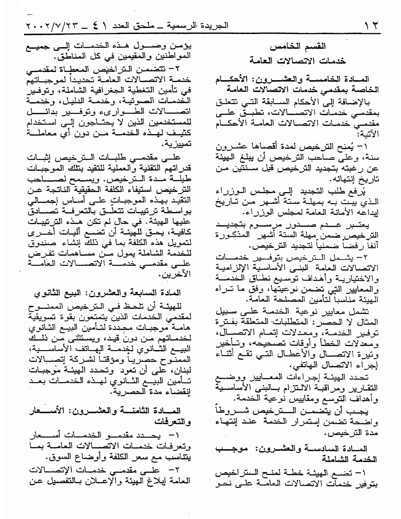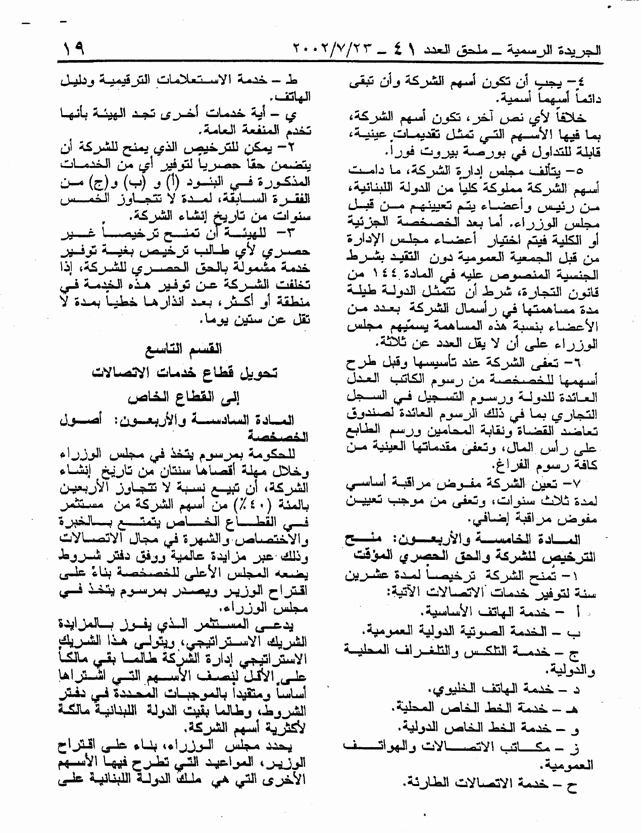 القانون 431 الذي ينصّ على إنشاء الهيئة ، التي انيط بها تحرير وتنظيم وتطوير قطاع الاتصالات في لبنان