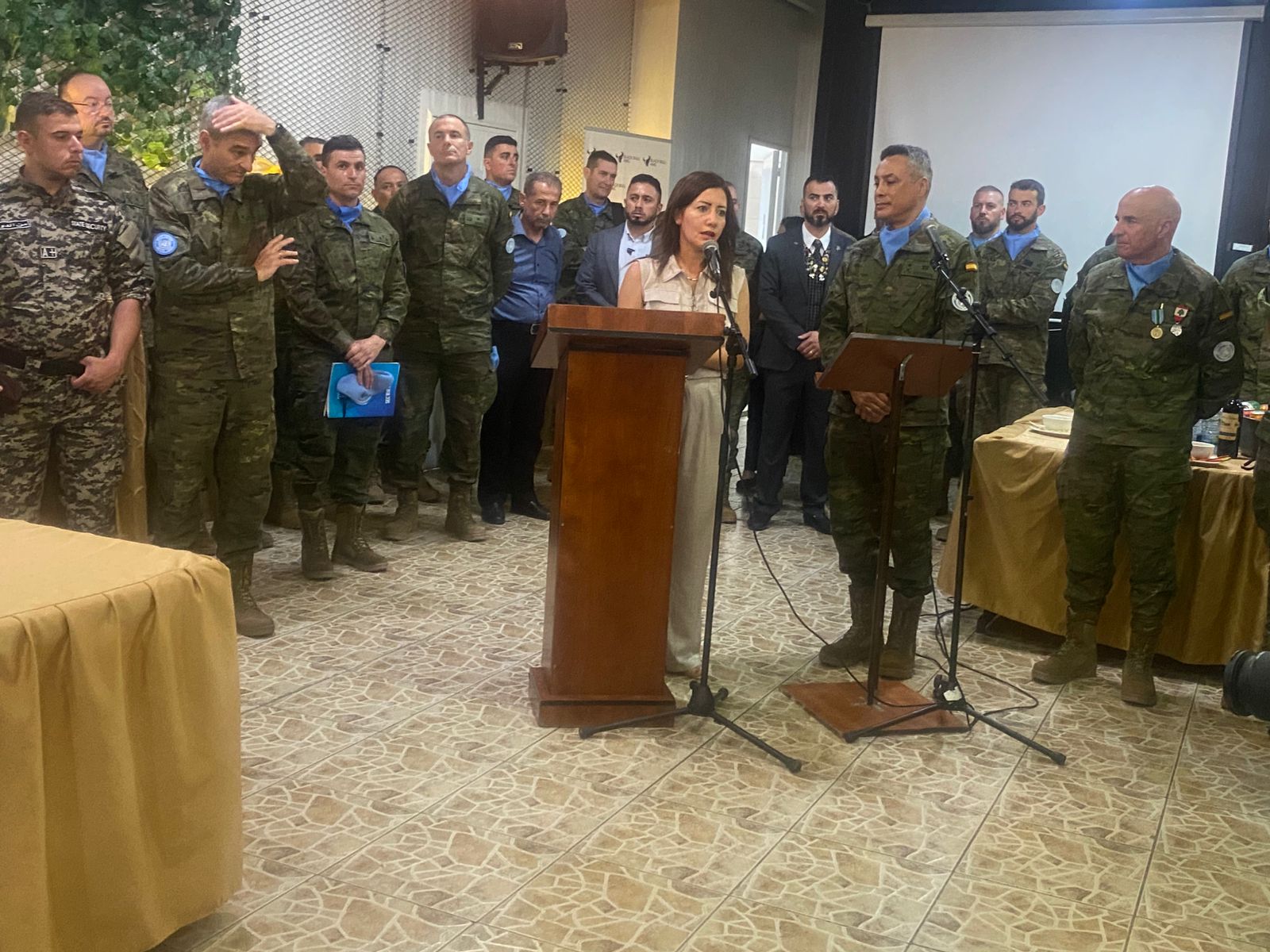 وشهد الحفل مراسم تسليم علم الأمم المتحدة من الجنرال فرناندو رويز غوميز، القائد المنتهية ولايته، إلى الجنرال ريكاردو إستيبان كابريجوس، الذي سيقود الكتيبة خلال الأشهر الستة المقبلة.