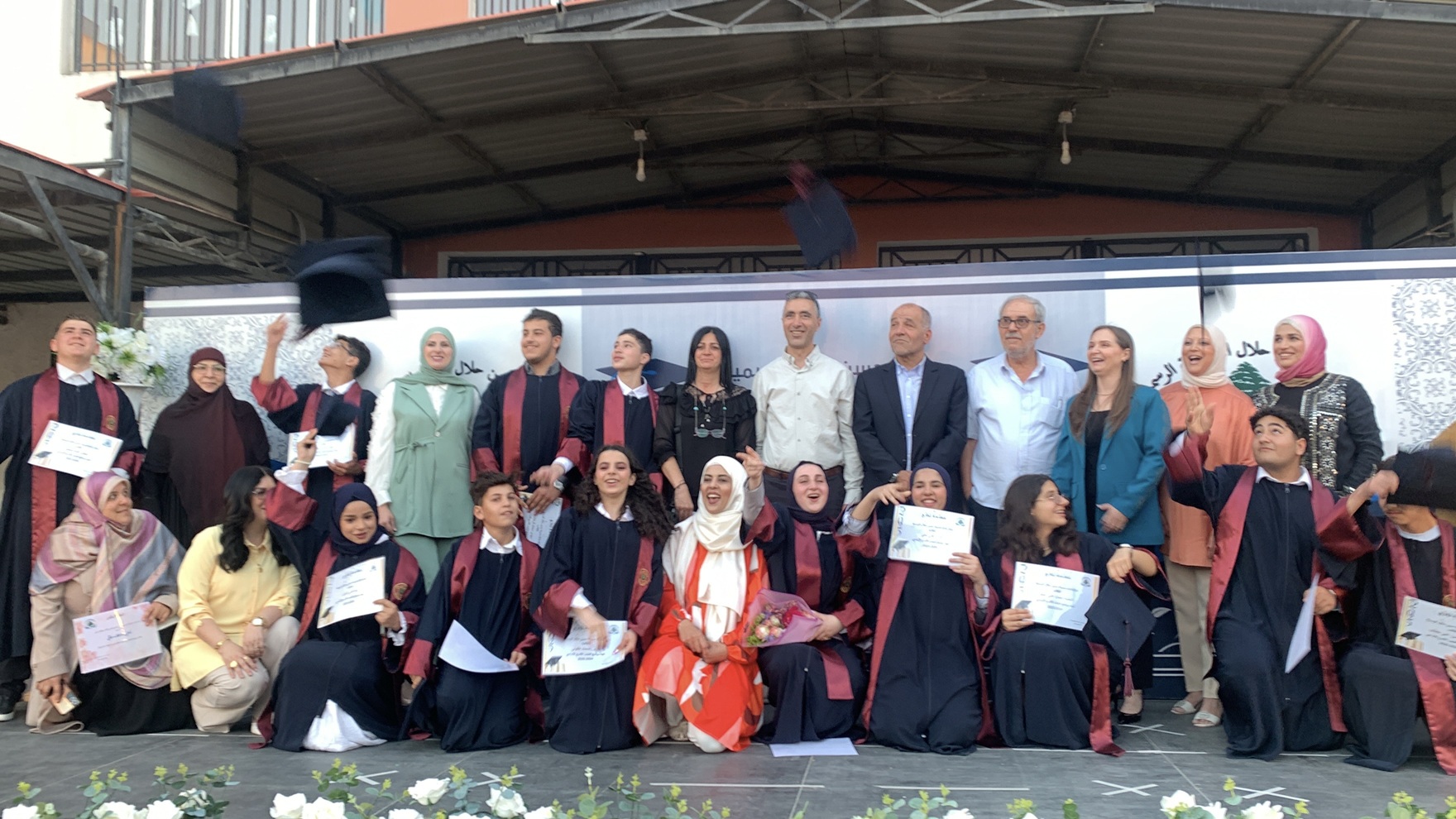 بعد النشيد الوطني افتتاحا، ودخول موكب الطلاب، وكلمة تعريف وترحيب من المربية آمنة نور الدين ، قدم طلاب من المدرسة لوحات فنية وفولكلورية ، ثم ألقيت كلمات لطلاب ، تلاهم كلمة مديرة مدرسة حسن حلال المتوسطة فاديا مكي قالت فيها : نقف اليوم وسط بقايا عام جريح لا لنطوي صفحة سنة دراسية فقط بل لنروي حكاية تحد وإصرار على النهوض من تحت الركام نجتمع اليوم تحت عنوان عزيز ولد من قلب الألم لكنه مشبع بالأمل. " من تحت الركام نزهر من جديد" هذا العنوان لم يكن مجرد كلمات منمقة بل هو تلخيص لعام دراسي مضني عشناه بكل ثقله بعد حرب قاسية عصفت ببيوتنا ومدارسنا فهدمت الحجر لكنّها لم تستطع أن تكسر البشر رحل منّا شهداء... أبطال كتبوا أسماءهم بدمائهم في سجل الكرامة. فاسمحوا لي أن أطلب منكم قراءة الفاتحة لأرواحهم الطاهرة... فهم رحلوا لنحيا، وليبقى لنا مكان في زمن طغى فيه الدمار ولف الألم تفاصيل أيامنا بقيت هناك شموع صغيرة تأبى أن تنطفئ تلامذتنا … هؤلاء المضيؤون رغم ظلمة الحرب التي لم تستطع أن تسرق براءتهم ولا أن تقتل شغفهم بالتعلّم من تحت الركام خرجت ضحكاتهم ومن بين الحطام نبتت كلماتهم فحققوا إنجازًا تلو إنجاز في الرياضة والفنون والأدب والعلوم وما كان لهذه الإنجازات أن تتحقق لولا الهيئة التعليمية والإدارية التي وقفت في وجه الصعاب بكل إخلاص وبذلت من روحها ووقتها لتبقى هذه المؤسسة حيّة فاعلة لكنّ معلمات مدرستنا أسمى كلمات الشكر والتقدير فأنتن عماد هذا الصرح رغم الظروف أثبتن أن التربية ليست مهنة بل رسالة وأن قلوبكن وضمائركن نابضة بالمحبة ولخريجينا الأعزاء أنتم الحكاية كلها أنتم الفرح والأمل المتجدد تغادرون اليوم هذا البيت الذي احتضنكم لسنوات متوجهين نحو مرحلة جديدة محملين بالذكريات والطموحات أوصيكم بأن تكونوا كما عهدناكم طلاب علم وأخلاق باحثين عن التميز مؤمنين بأن بالعلم نبني المستقبل إحملوا في قلوبكم ما تعلمتموه هنا القيم والإصرار والصدق والوعي وحب الوطن وتقدموا بكل ثقة فنحن نفتخر بكم وننتظركم في المستقبل قادة مبدعين رافعين راية العلم والنجاح أينما حللتم. الشكر للأهل الكرام،شركاؤنا الحقيقيون في العملية التربوية، أنتم الركن الثابت، والداعم الصامت، والسند الذي لا يتأخر. بمتابعتكم، وحرصكم، وتعاونكم، استطعنا أن نُكمل الرسالة، ونعبر معًا عامًا دراسيًا مليئًا بالتحديات والنجاحات. نقدّر ثقتكم بنا، ونعتزّ بهذه الشراكة التي تجمعنا على حبّ أبنائنا، فمعًا نبني، ومعًا نرتقي.