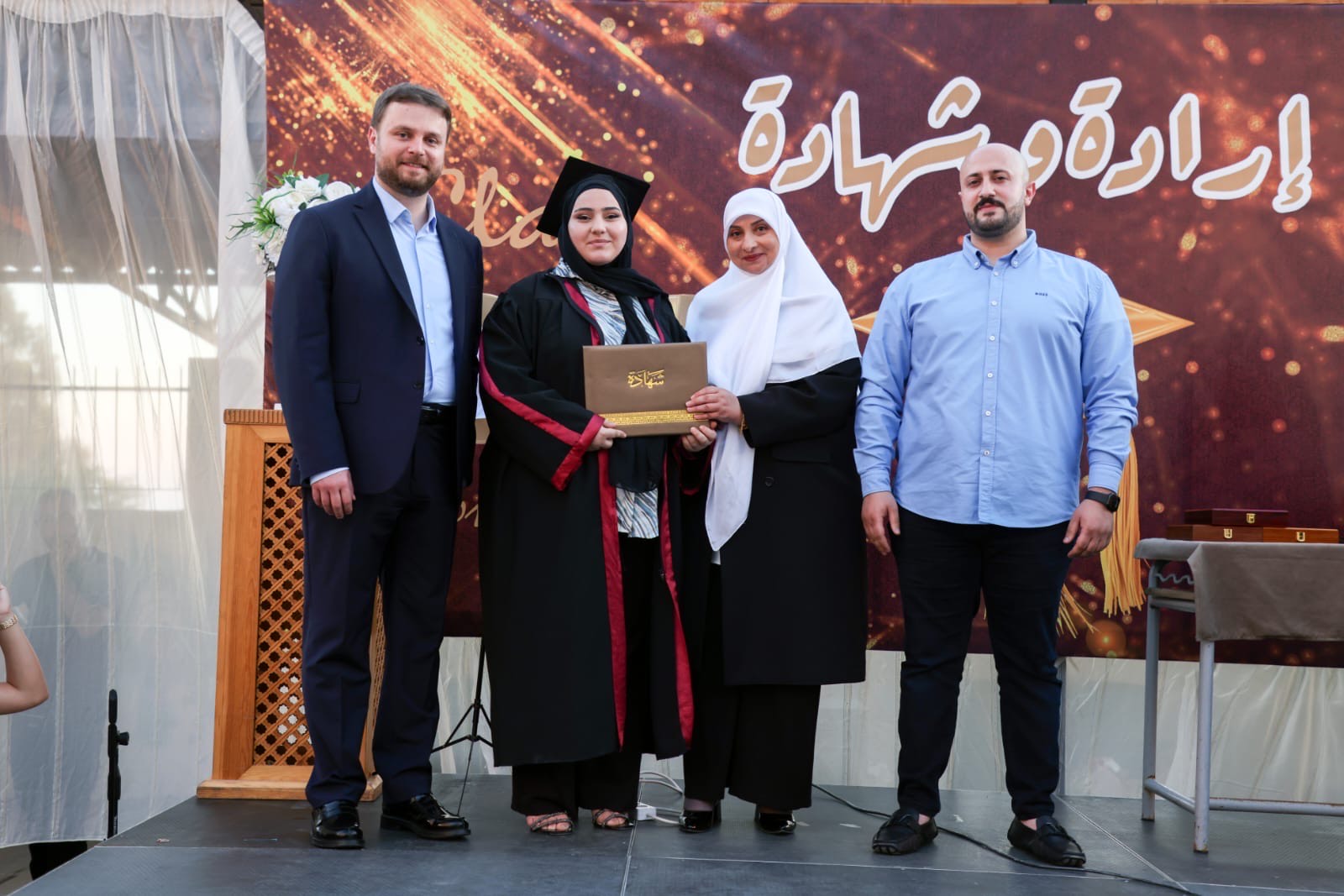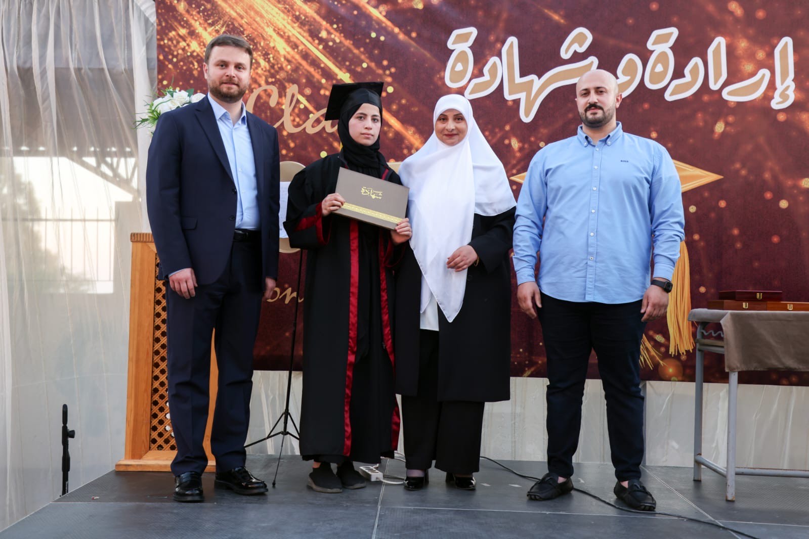 بعد ذلك قدمت نور الدبن درعا تقديريا لراعي الاحتفال ، ثم جرى توزيع شهادات تقديرية على الطلاب المكرمين