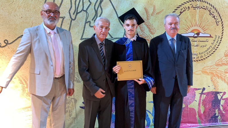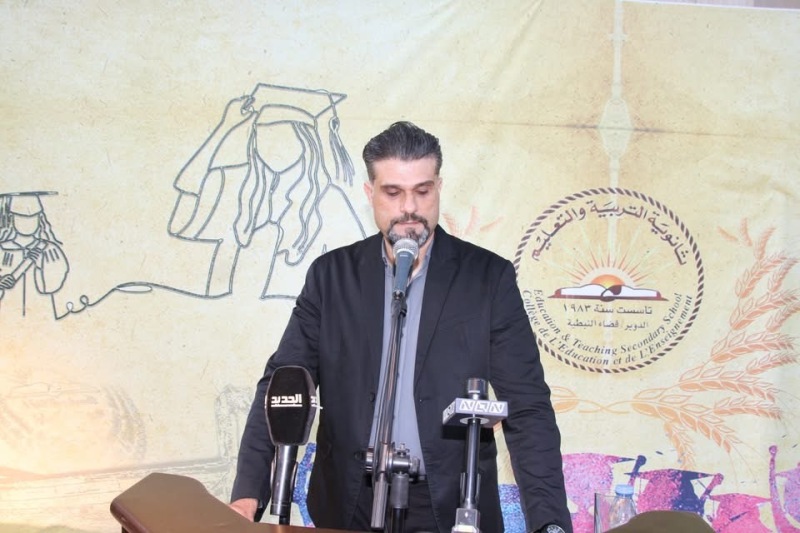 وقال : لو لم تكونوا أبناءً تربية قائمة على التمسك بالقيم، وأبناء تربة تمايزت أرضها بالصلابة والتحم إنسانها بالتضحية والصمود، لما نبتت فيكم روح تحدي اكتساب العلم والمعرفة والتطلع دوماً إلى الأعلى، فالشكر كل الشكر لآبائكم وأمهاتكم الصامدين رغم الاعتداءات والتهديدات، والتحية لإدارة ثانوية التربية والتعليم، ولهيئتها التعليمية التي عملت بوحي رسالتها، ليكون زادكم العلمي كما الضوء الذي ينير أمامكم مجالات التخصص وميادين الإبداع،