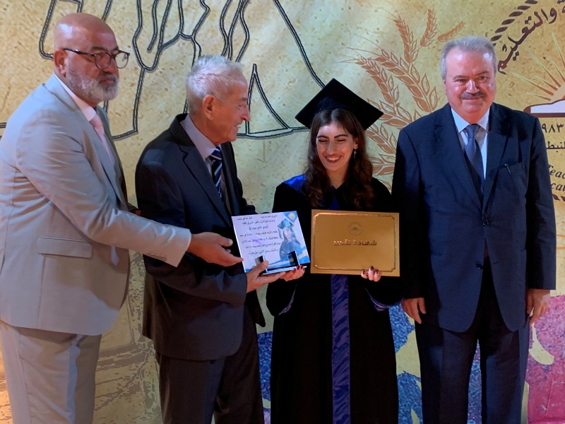 بعد ذلك قدم قانصو درعا تقديريا للوزير جابر ، ثم جرى توزيع شهادات تقديرية على الطلاب المكرمين