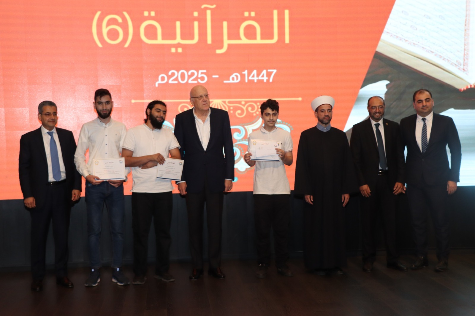 برعاية سماحة مفتي الجمهورية اللبنانية، أقامت جمعية الإرشاد والإصلاح بالشراكة مع مؤسسة شقير الخيرية، حفل توزيع جوائز مسابقة "نزار وسهام شقير القرآنية" السنوية التي تنظمها دار اقرأ للعلوم الإسلامية والعامة على مستوى كل لبنان، وذلك عصر يوم السبت 27/8/2025 في قاعة المؤتمرات لشركة طيران الشرق الأوسط بحضور مفتي الجمهورية اللبنانية الشيخ عبد اللطيف دريان ممثلاً بالشيخ محمود الخطيب، دولة رئيس مجلس الوزراء نجيب ميقاتي، النائبين وضّاح الصادق وابراهيم منيمنة، آل شقير ممثلين بمعالي السيد محمد شقير ورئيس مجلس أمناء دار العجزة أسامة شقير، رئيس مؤسسة شقير الخيرية الأستاذ عبد العزيز جمعة وحشد من المشايخ والعلماء ورؤساء الجمعيات وقضاة وأمنيين ورؤساء بلديات، إلى جانب رئيس الجمعية المهندس ابراهيم طقوش وأعضاء الجمعية والمشاركين في المسابقة وأهاليهم.