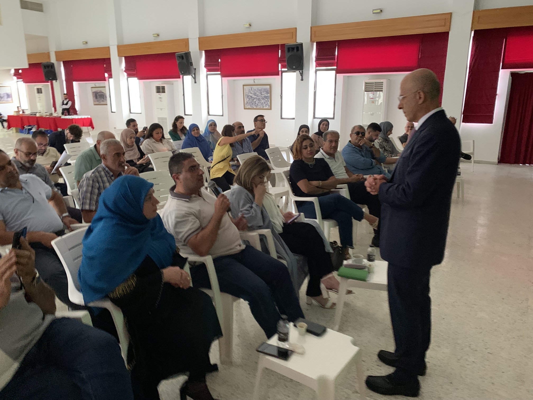 وقد عقد لقائين منفصلين متتاليين ، الأول مع رؤساء الاتحادات البلدية والبلديات، والثاني مع رؤوساء المصالح والادارات الرسمية في مركز كامل يوسف جابر الثقافي في النبطية بحضور وزير الدولة لشؤون التنمية الإدارية الدكتور فادي مكّي وفريق عمل الوزارة بالإضافة إلى محافظ النبطية البروفيسور هويدا الترك، جرى خلالهما الاستماع إلى تطلعات المشاركين ورؤيتهم لدور الإدارات المحلية في إطار اللامركزية، كما تمت مناقشة سبل تعزيز فعالية السلطات المحلية وتمكينها من أداء دورها التنموي والخدماتي.