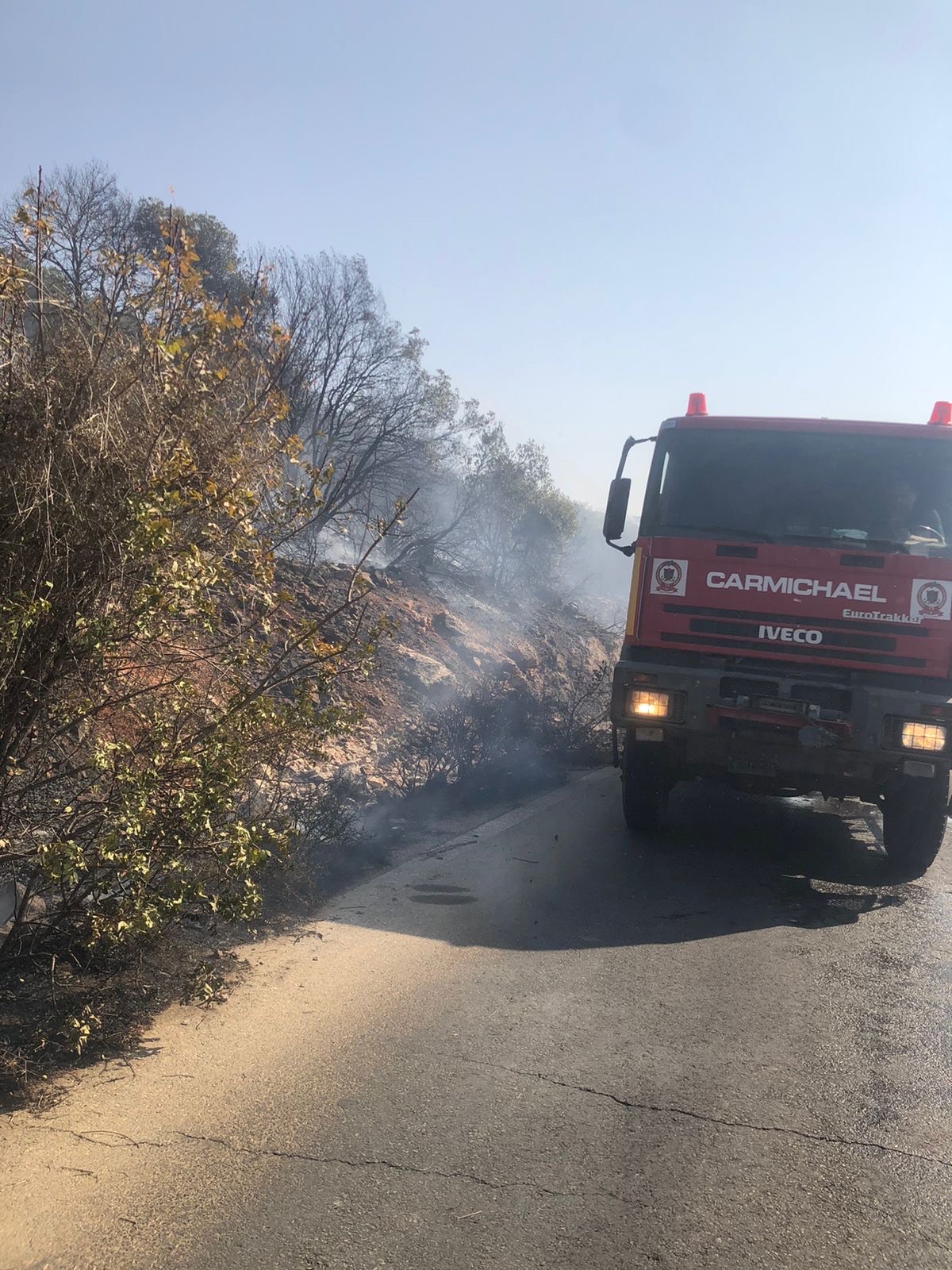 وتواجه فرق الدفاع المدني من مراكز النبطية وجزين واقليم التفاح مع فرق من اتحاد بلديات اقليم التفاح واتحاد بلديات جبل الريحان و"كشافة الرسالة الاسلامية" و"الهيئة الصحية الاسلامية"، صعوبات كبيرة في السيطرة على الحريق بسبب وعورة المنطقة، ووجود اجسام مشبوهة غير منفجرة من مخلفات العدوان.