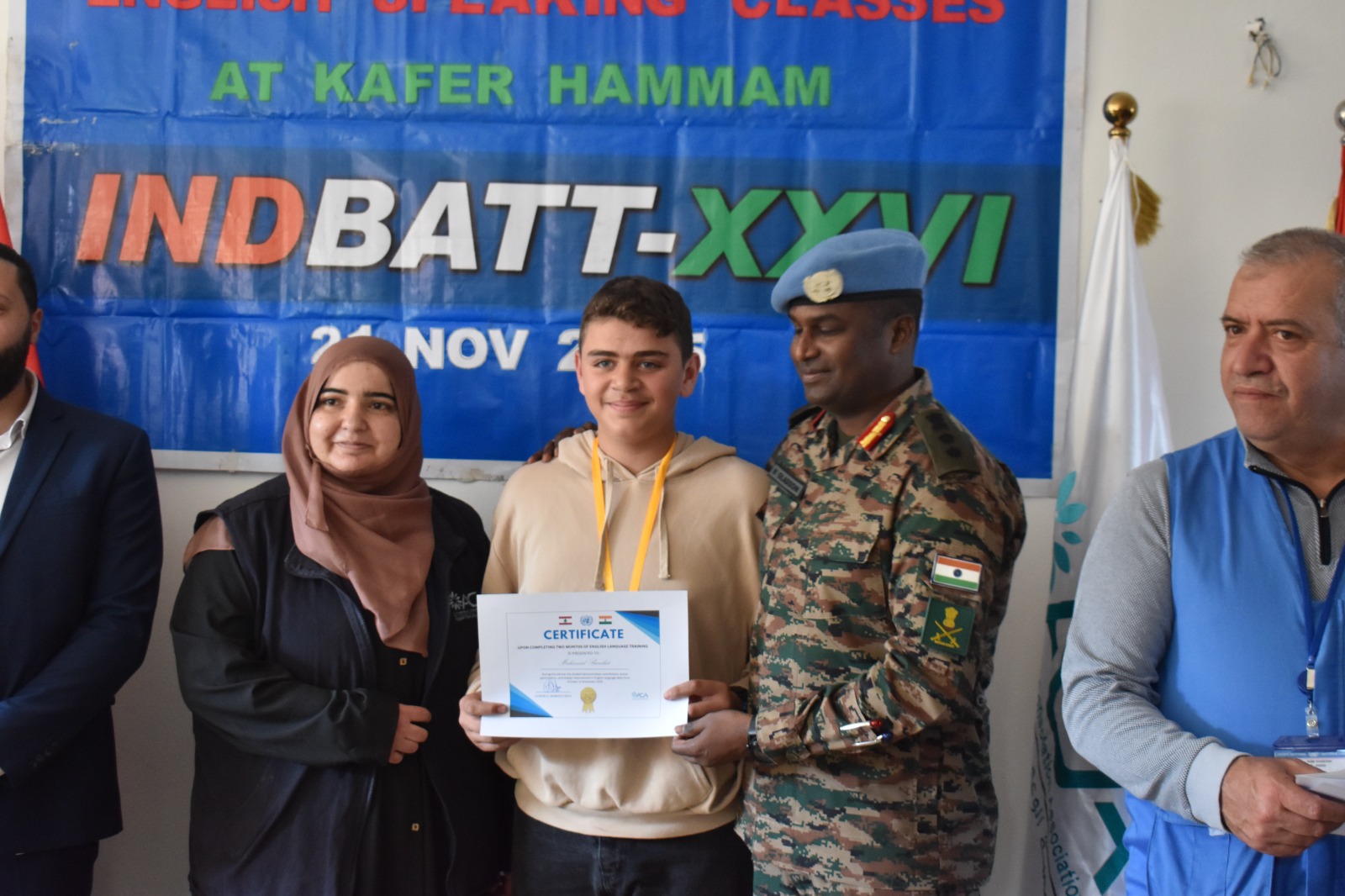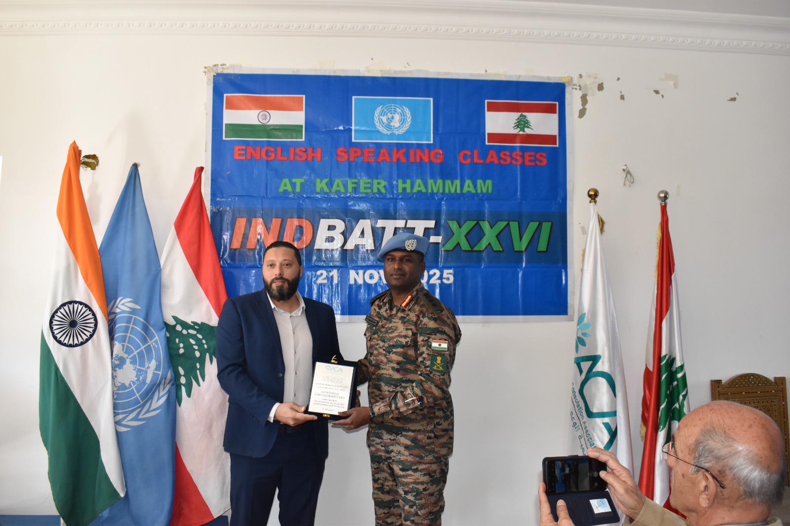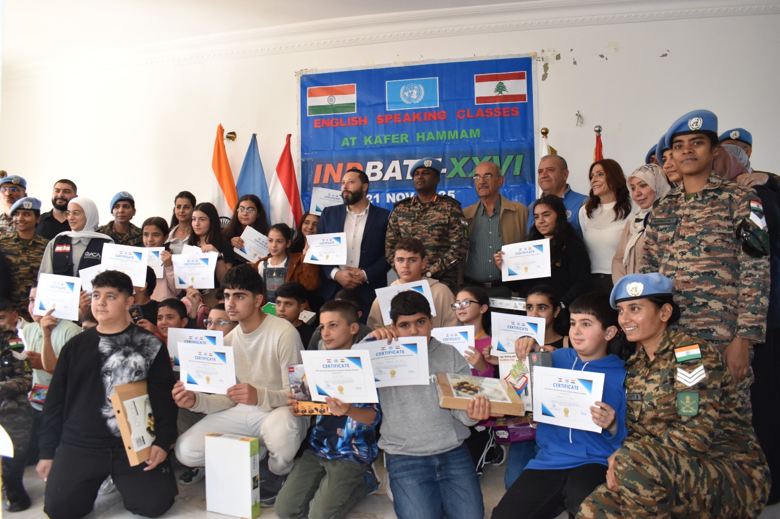 أقامت الكتيبة الهندية اليوم حفل اختتام دورة المحادثة باللغة الإنجليزية التي استمرت لمدة شهرين، في خطوة تُتوّج مبادرة جديدة من مبادراتها المؤثرة في دعم المجتمع المحلي. وكجزء من حفل توزيع الشهادات، جرى تكريم جميع الطلاب الذين شاركوا بجدية وأتمّوا الدورة بنجاح، تقديراً لالتزامهم وتقدّمهم الملحوظ. وقد شارك في هذه الدورة ما مجموعه 40 طالباً وطالبة من قرى كفرشوبا، كفرحمام، والهبّارية.