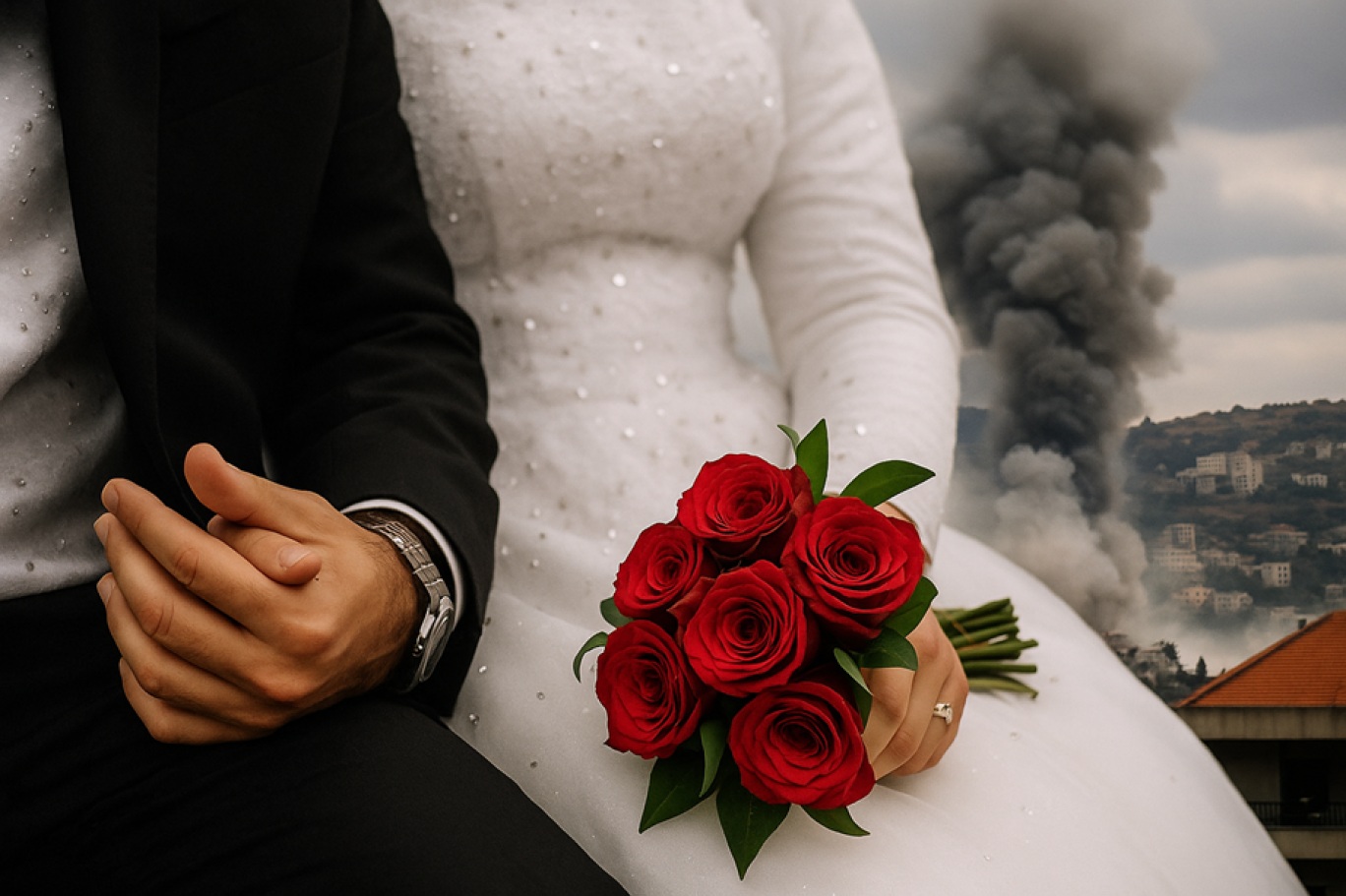 من يستعد لإقامة عرس أو زفاف في هذه الأيام فإنما وسط الموت المستمر، والدمار المتوقع في كل يوم، وهو لم يتوقف (صورة مصممة عبر الذكاء الاصطناعي)