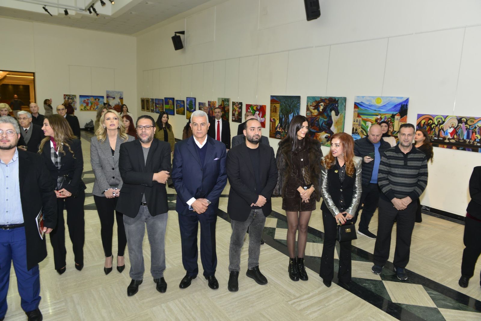 بعد الكلمات، قام الحضور بجولة في أرجاء المعرض الذي ضمّ مجموعةً متنوّعةً من اللوحات الفنية التي تميزت بجاذبيّتِها البصريّة والتحامٍ إبداعيٍّ متفرّدٍ بين القديمِ والحديث. وقد تنوّعت الألوانُ وتماوجت في مشهدٍ ارتحاليٍّ بين الماضي والحاضر، جامعًا بين أنماط الفنون التشكيليّة المفعمةِ بالفرحِ والتأمّلِ والانسيابِ الذهنيّ.