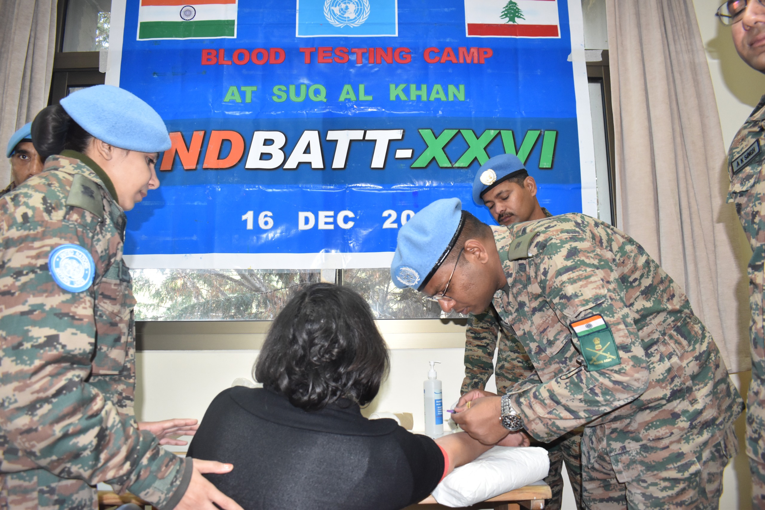 وفي 16 كانون الأول 2025، نفّذ الفريق الطبي التابع لكتيبة المشاة الهندية مخيّمًا لفحوصات الدم في مركز حاصبيا العرقوب للرعاية والتنمية (سوق الخان)، بهدف دعم صحة المجتمع من خلال تقديم خدمات تشخيصية أساسية والكشف المبكر عن الحالات الطبية الشائعة. وقد استفادت من المخيّم 30 سيدة، وتمّ تنظيمه في بيئة آمنة ونظيفة ومتكاملة. وإلى جانب الفحوصات، جرى تقديم إرشادات طبية أساسية وتوعية صحية للمستفيدات بهدف تعزيز ممارسات الرعاية الصحية الوقائية.