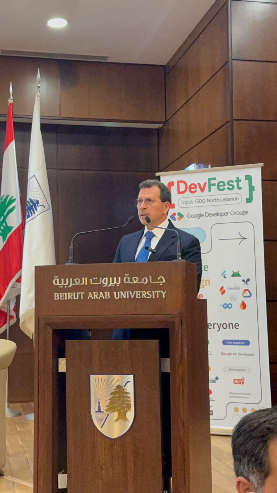 شارك وزير المهجّرين ووزير الدولة لشؤون التكنولوجيا والذكاء الاصطناعي الدكتور كمال شحادة، بمؤتمر ومعرض "DevFest 2025" الذي نظّمه تجمّع Google Developer Groups (GDG) بالتعاون مع جامعة بيروت العربية داخل حرمها في مدينة طرابلس، بحضور أكثر من 30 شركةً تكنولوجيّةً و40 متحدثًا متخصصًا، إضافةً إلى مشاركة كثيفة من الطلاب الجامعيين.