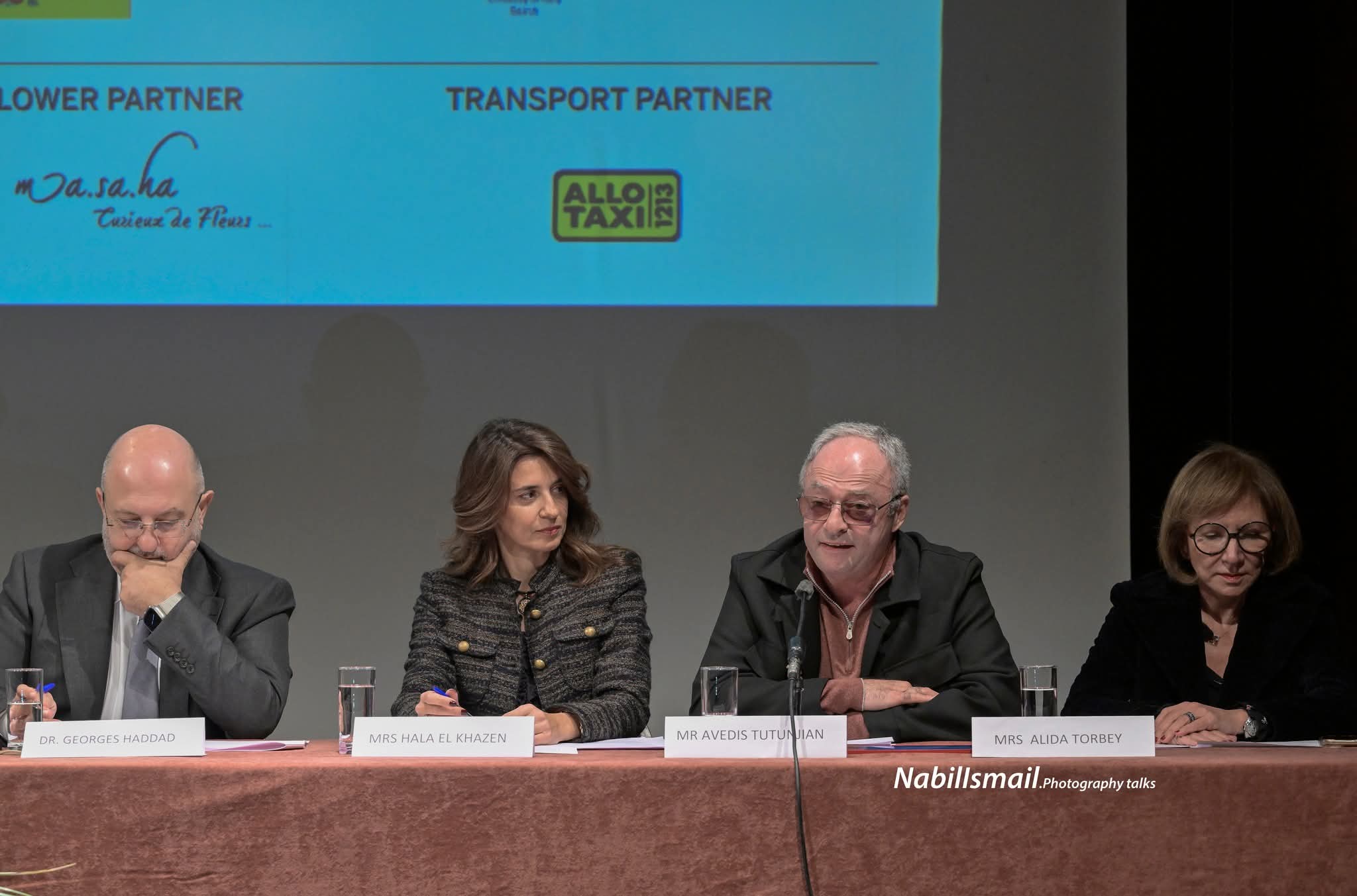 إلى جانب وزير الثقافة غسان سلامة وأعضاء لجنة المهرجان، حضرت في القاعة مؤسسة الحدث، ميرنا البستاني، التي كرّمتها ابنتها لورا بتحية وابتسامة حب، كما ذكرت خلال المؤتمر.