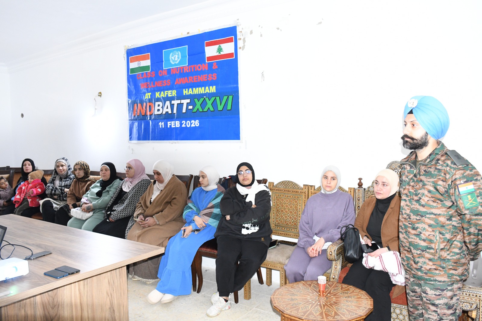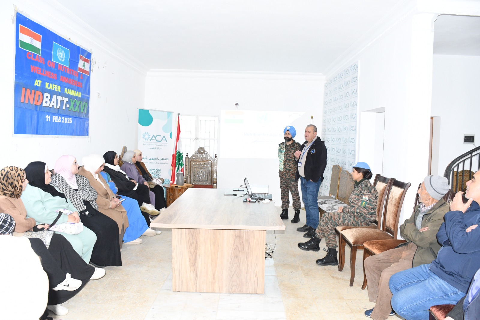 في لقاء مجتمعي حيوي، شارك 20 من النساء وبعض الرجال من المنطقة في ورشة عمل تفاعلية حول اهمية التغذية نظمتها الكتيبة الهندية السادسة والعشرون (INDBATT-XXVI) ضمن قوات اليونيفيل وذلك بالتنسيق الوثيق مع جمعية ACA .وقد أعطى الإرشادات الطبيب المسؤول في الكتيبة، حيث استعرض كيف يمكن للأطعمة التقليدية في جنوب لبنان أن تساهم في مكافحة المشكلات الصحية الشائعة وتعزيز صحة الأسرة.